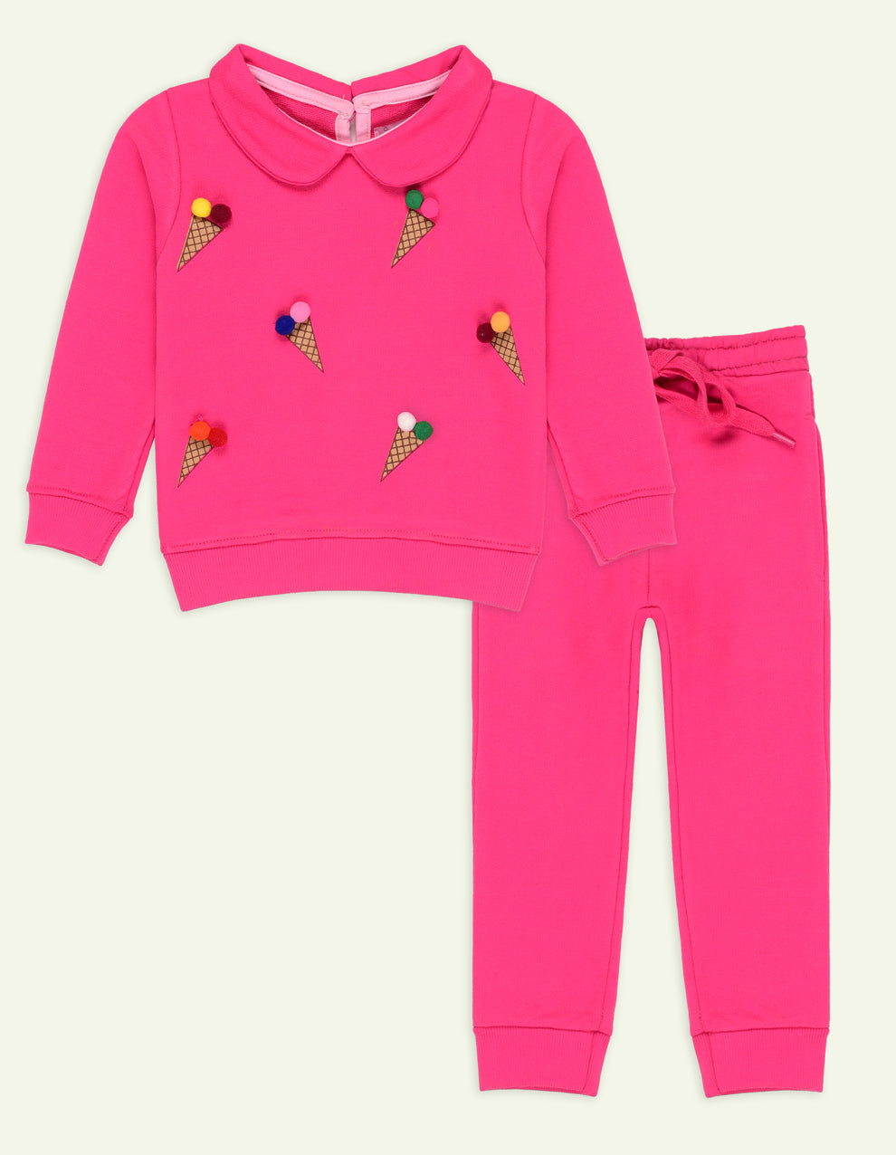 This cozy 2 Piece Pink Sweatshirt set is perfect for the winter season. The soft French terry fabric will keep your little girl warm and comfortable. The classic pink color is versatile, while the sweatshirt design adds a stylish touch with curved collar detail, waffle print along with Pom Pom detailing handcrafted with love. Ideal for everyday wear or casual outings.