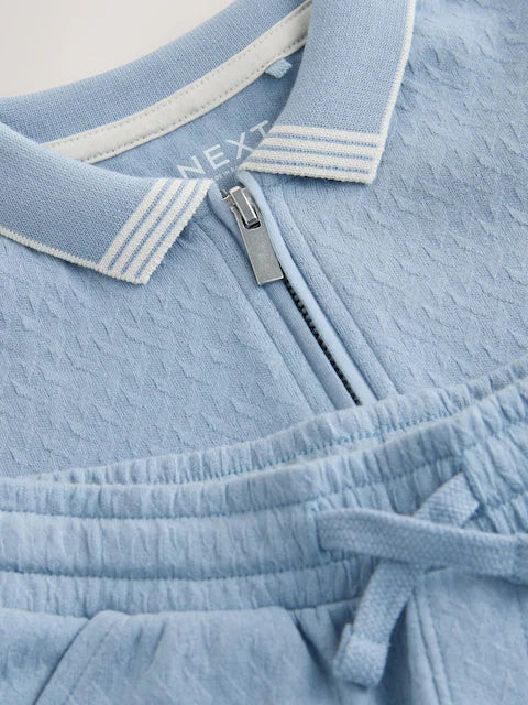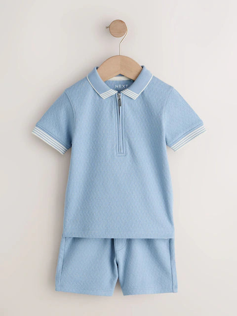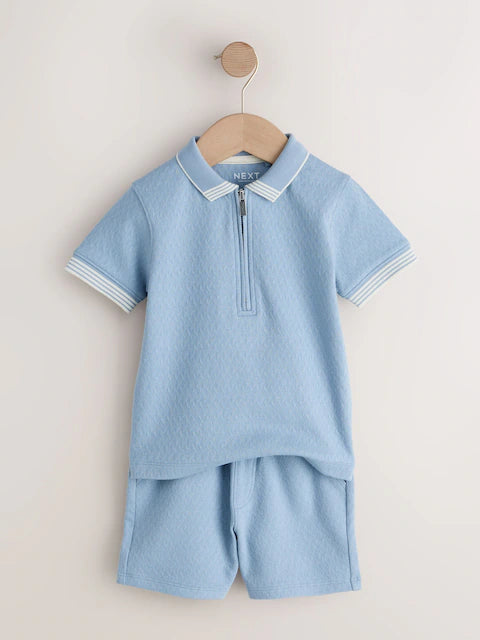 Blue Zip Neck Short Sleeve Polo Shirt And Shorts Set – Cotton Candy™ Pakistan