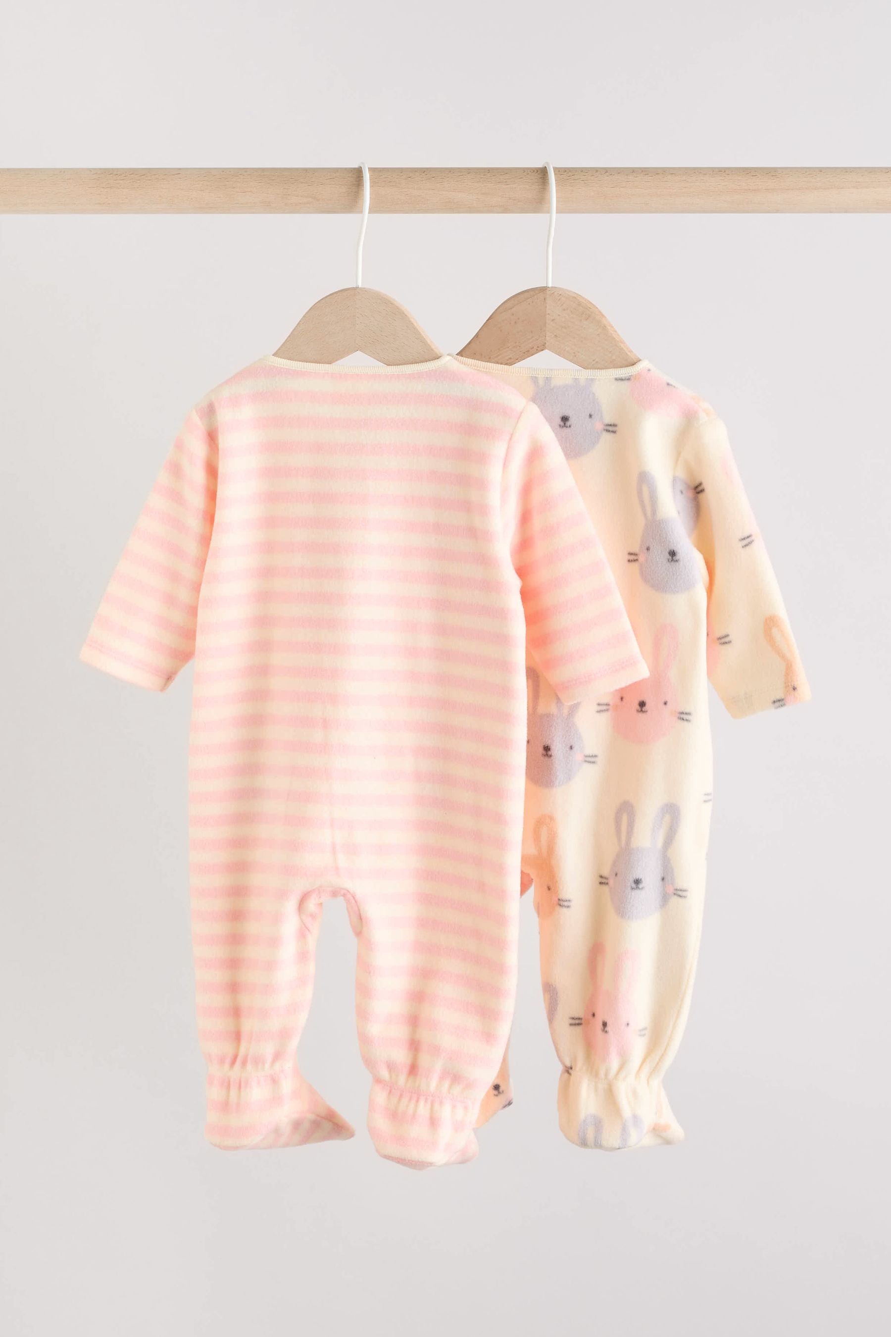 Pink 2 Pack Micro Fleece Two Way Zip Baby Sleepsuits