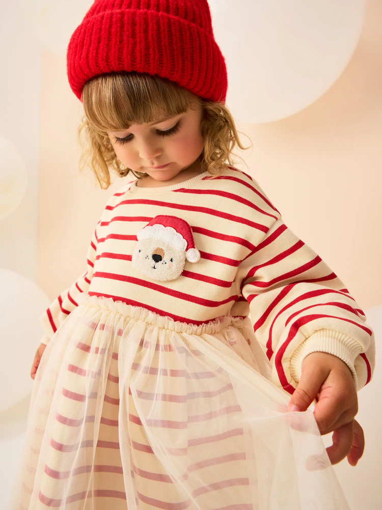 Christmas Bear Mesh Sweat Party Dress (3mths-7yrs)