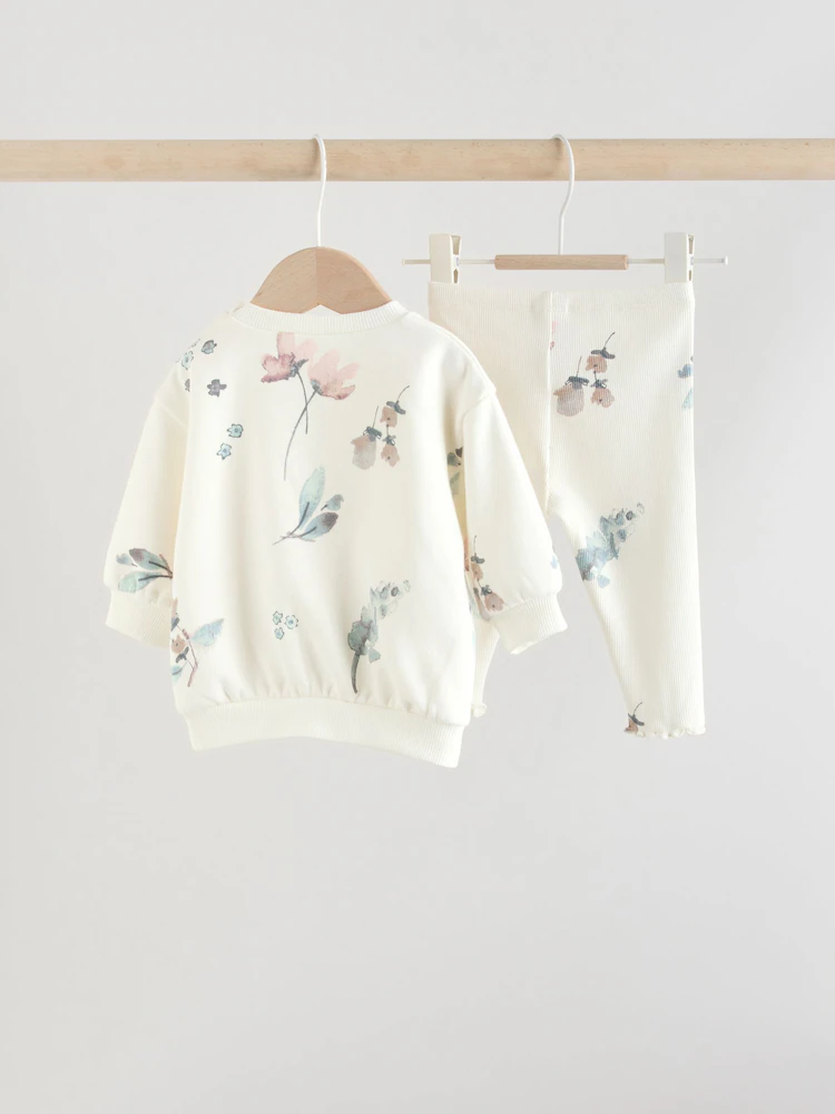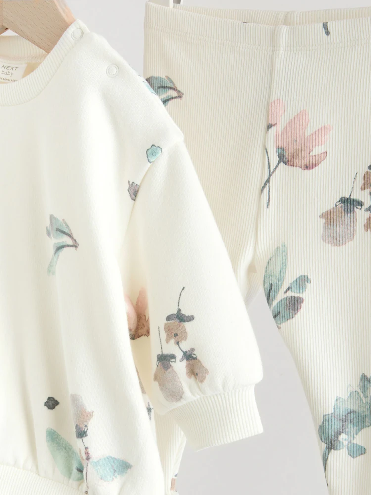 Cream Floral Baby Sweater and Joggers Set 2 Piece (0mths-2yrs)
