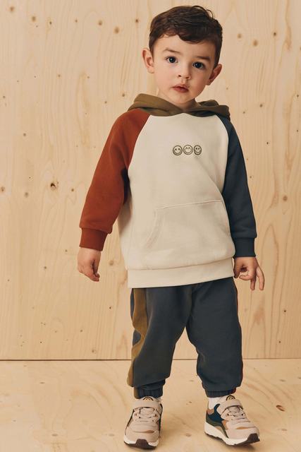 Ecru Off White and Charcoal Grey Colourblock Hoodie and Joggers Set (3mths-7yrs)