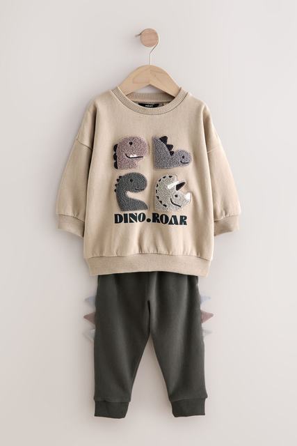 Grey and Charcoal Dinosaur Spike Single Sweatshirt and Joggers Set (3mths-7yrs)