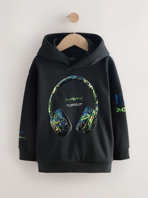 Black Headphones Older Boys Graphic Print Hoodie (3-16yrs)