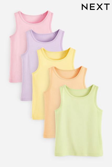 Multi Pastel 100% Cotton Vests 5 Pack (1.5-16yrs)