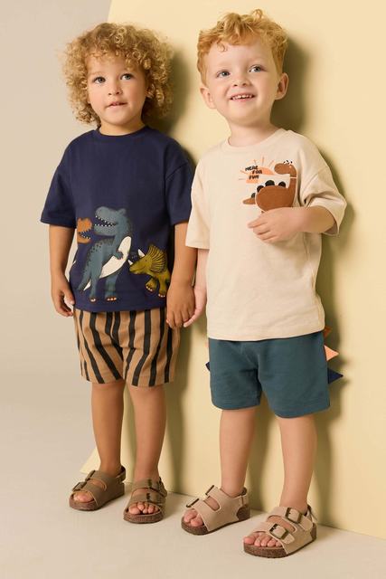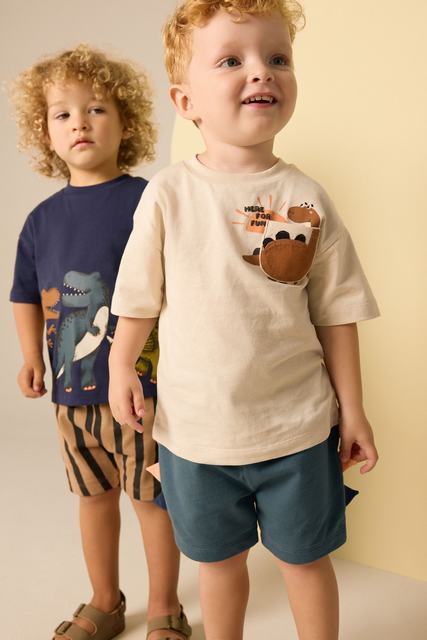 Navy/Stone Short Sleeve T-Shirt & Shorts Set 2 Pack (3mths-7yrs) (3mths-7yrs)