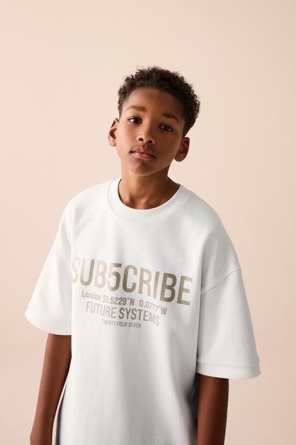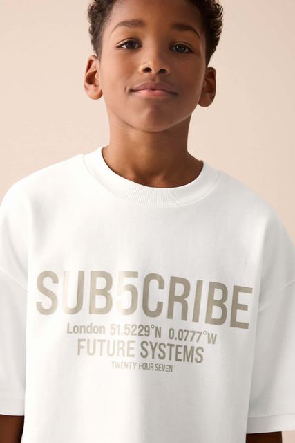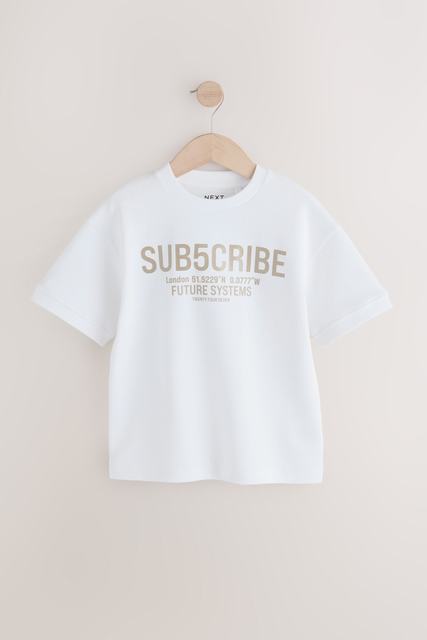 White Sub5cribe Graphic Print Heavyweight Short Sleeve T-Shirt (3-16yrs)