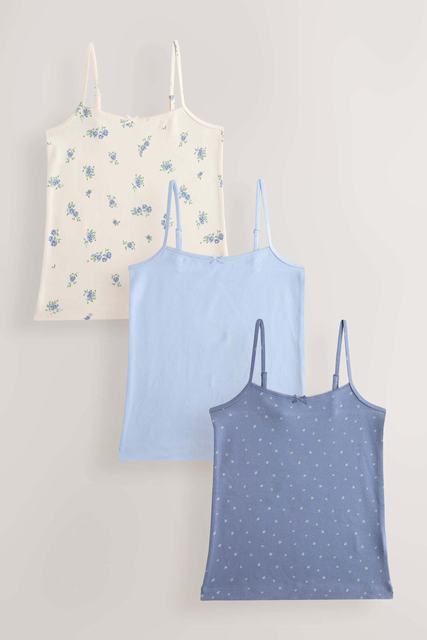 Blue Strappy Printed Cami Vests 3 Pack (1.5-16yrs)