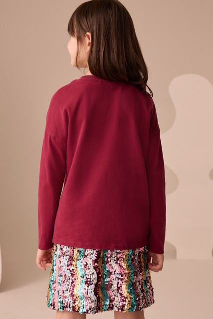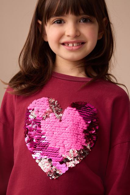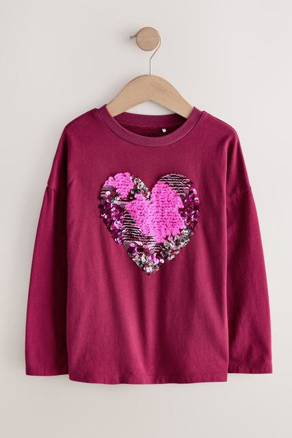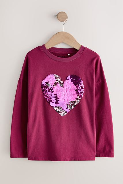 Burgundy Red Heart Long Sleeve Sequin Top (3-16yrs)