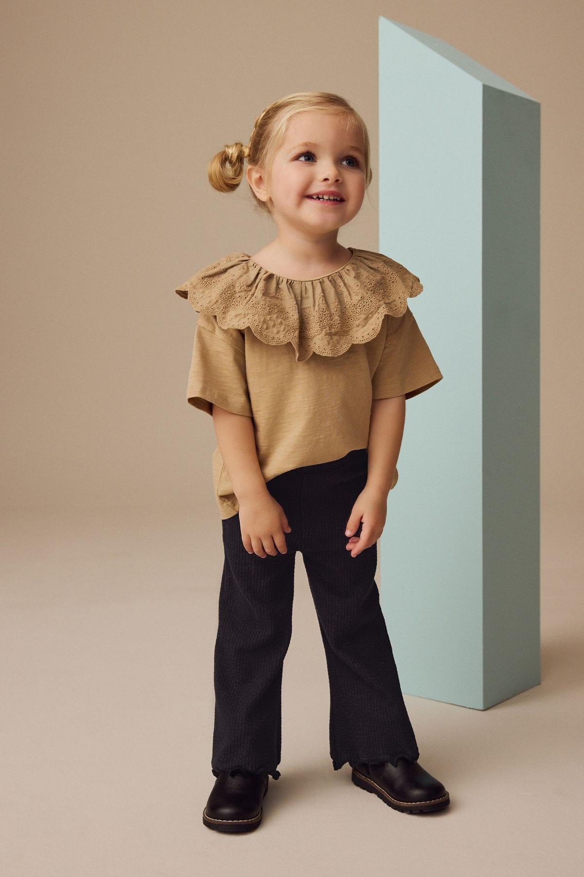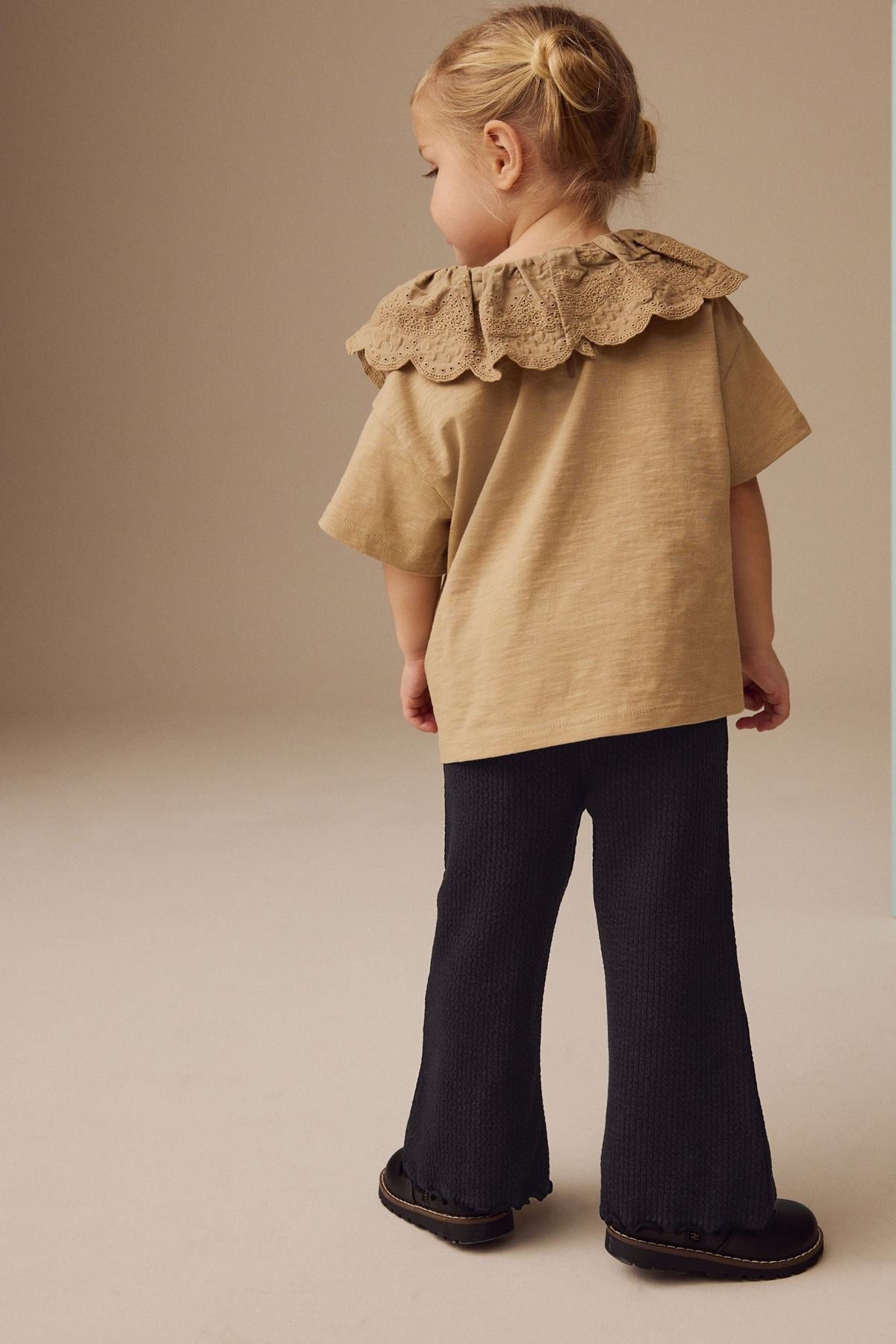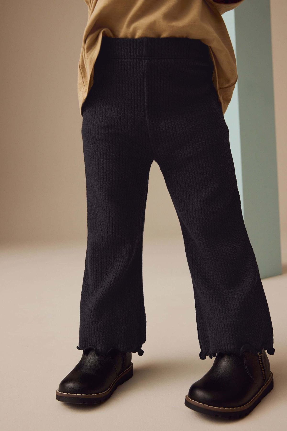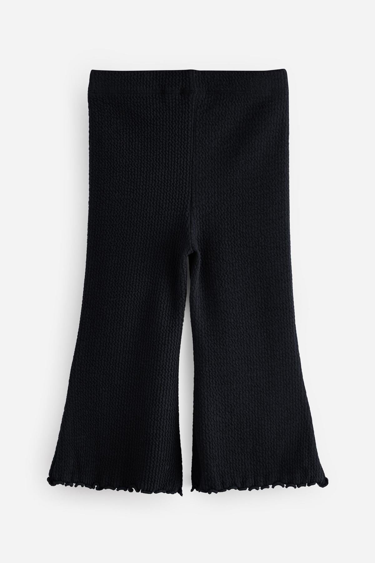 Black Ribbed Textured Flare Leggings (65% Cotton28% Polyester7% El)