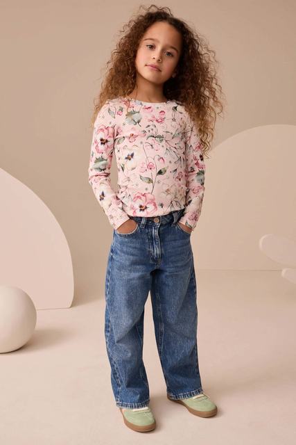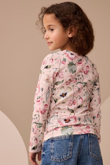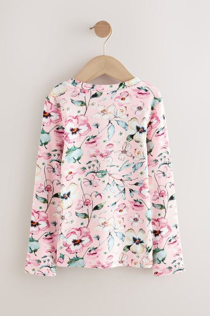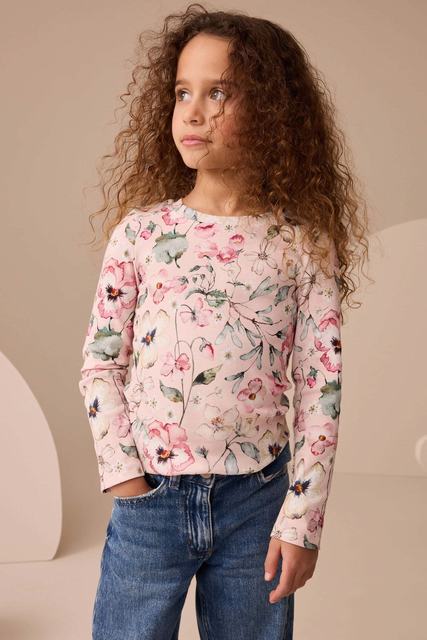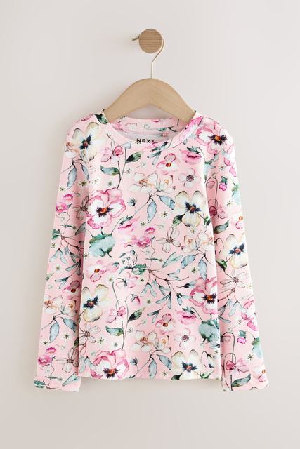 Light Pink Floral Long Sleeve Ribbed Top (3-16yrs)