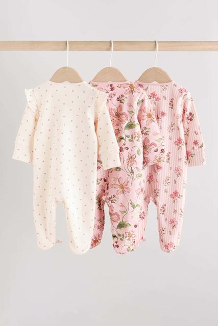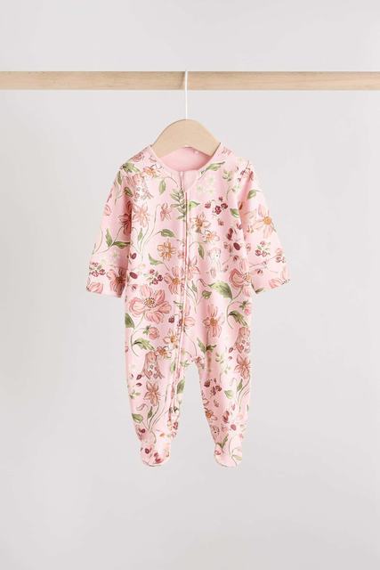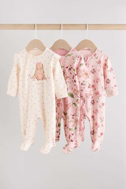 Pink 3 Pack Two Way Zip Baby Sleepsuits