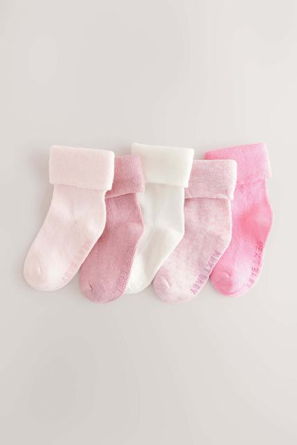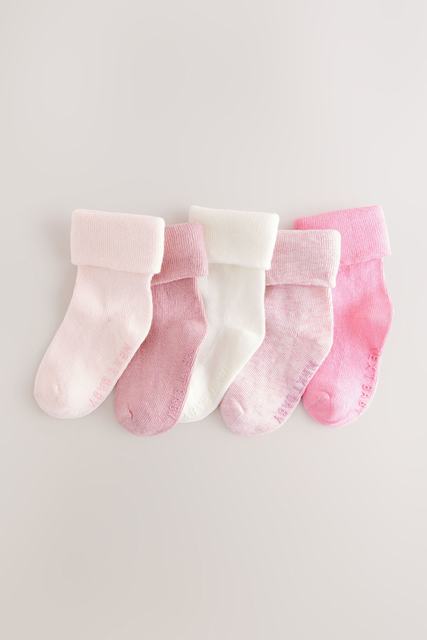 Pink Baby Roll Top Socks 5 Pack (0mths-2yrs)
