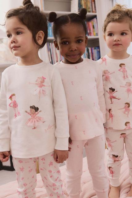 Pink/Cream Ballerina Snuggle Pyjamas 3 Pack (9mths-12yrs)