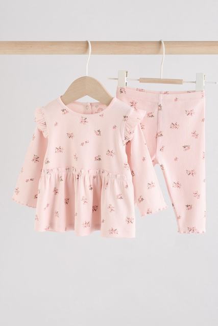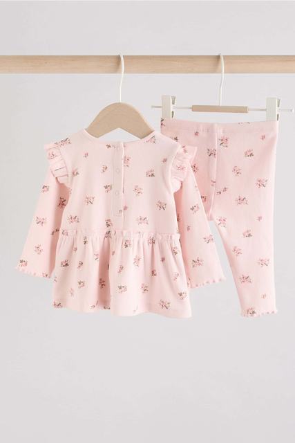 Pink Ditsy Baby Long Sleeve Frill Top And Leggings Set (0mths-2yrs)