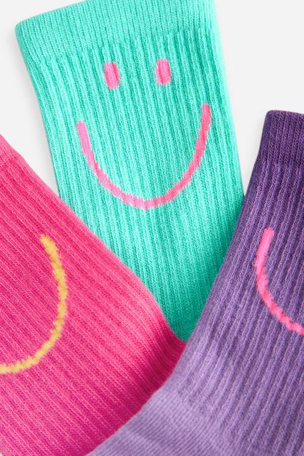 Pink, Purple and Teal Blue Character Regular Length 3 Pack Cotton Rich Cushioned Sole Ankle Socks