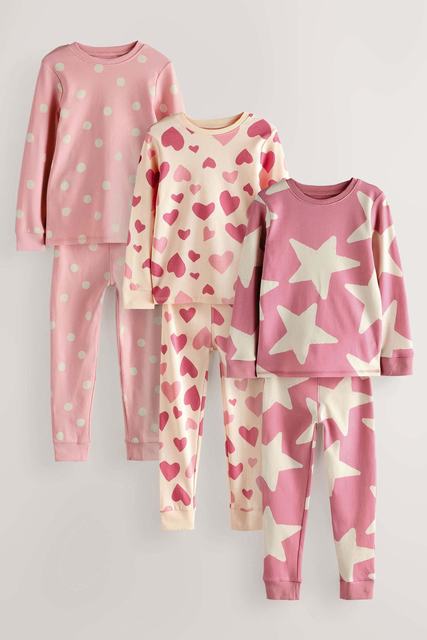 Pink/White Snuggle Pyjamas 3 Pack (9mths-12yrs)