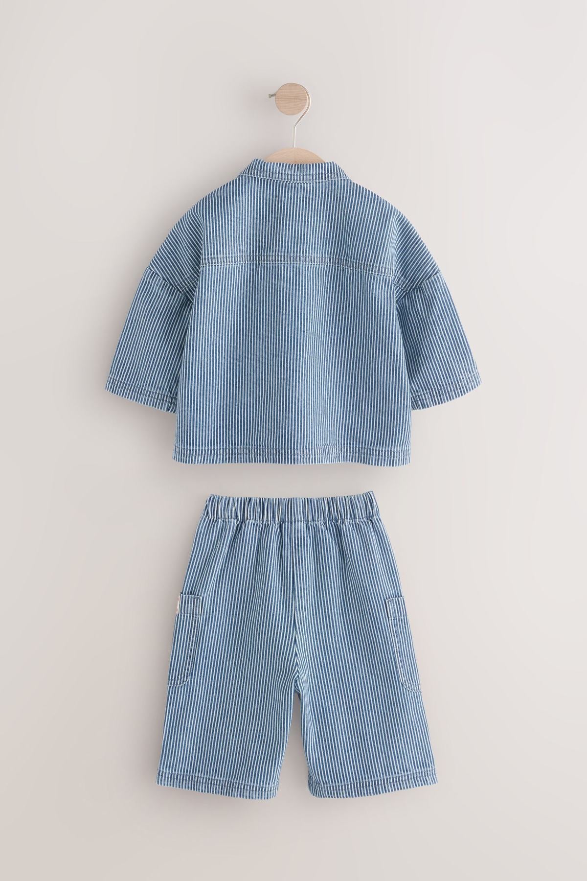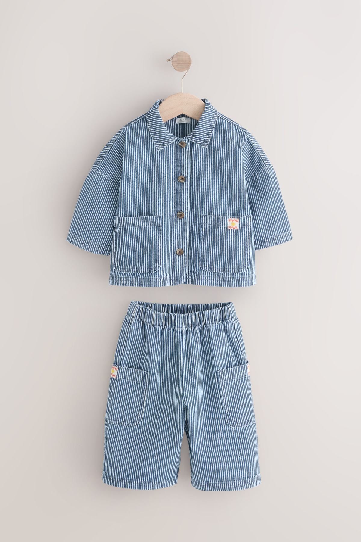Blue Ticking Stripe 100% Cotton Shirt And Trousers Set (100% Cotton)