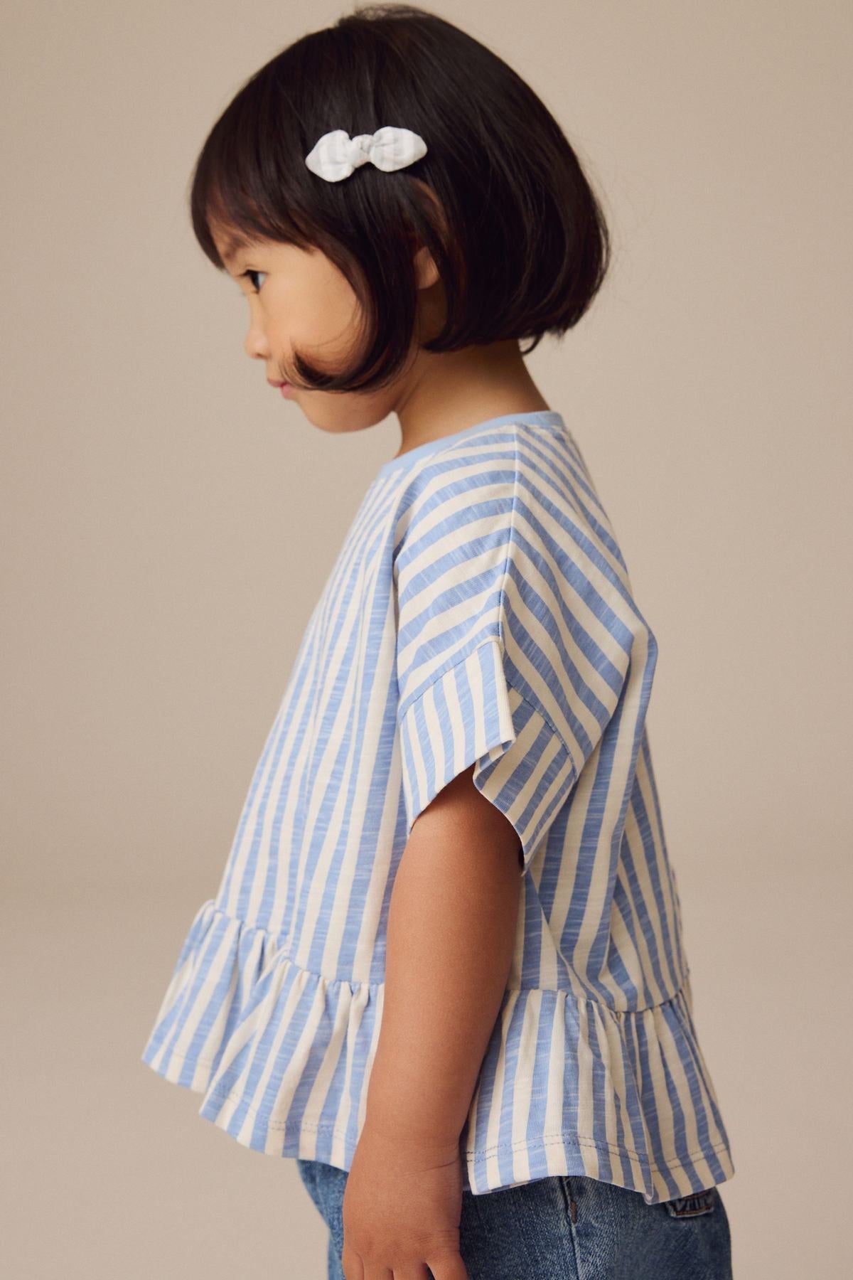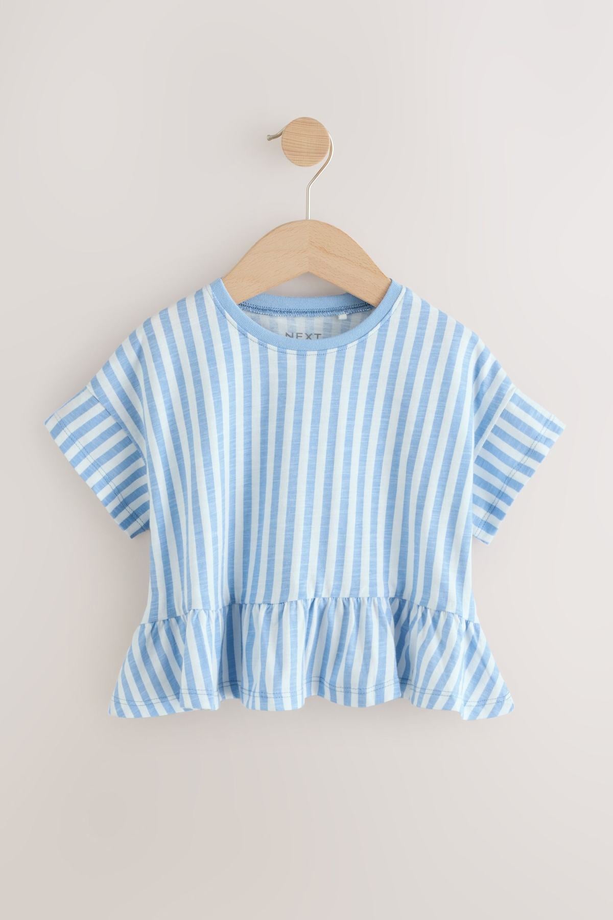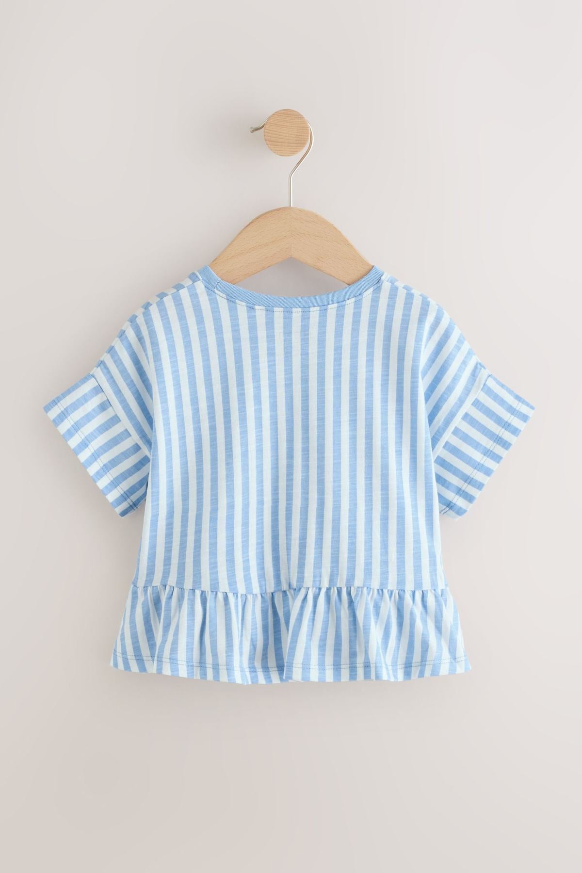 Blue Stripe 100% Cotton Short Sleeve Peplum T-Shirt (100% Cotton)