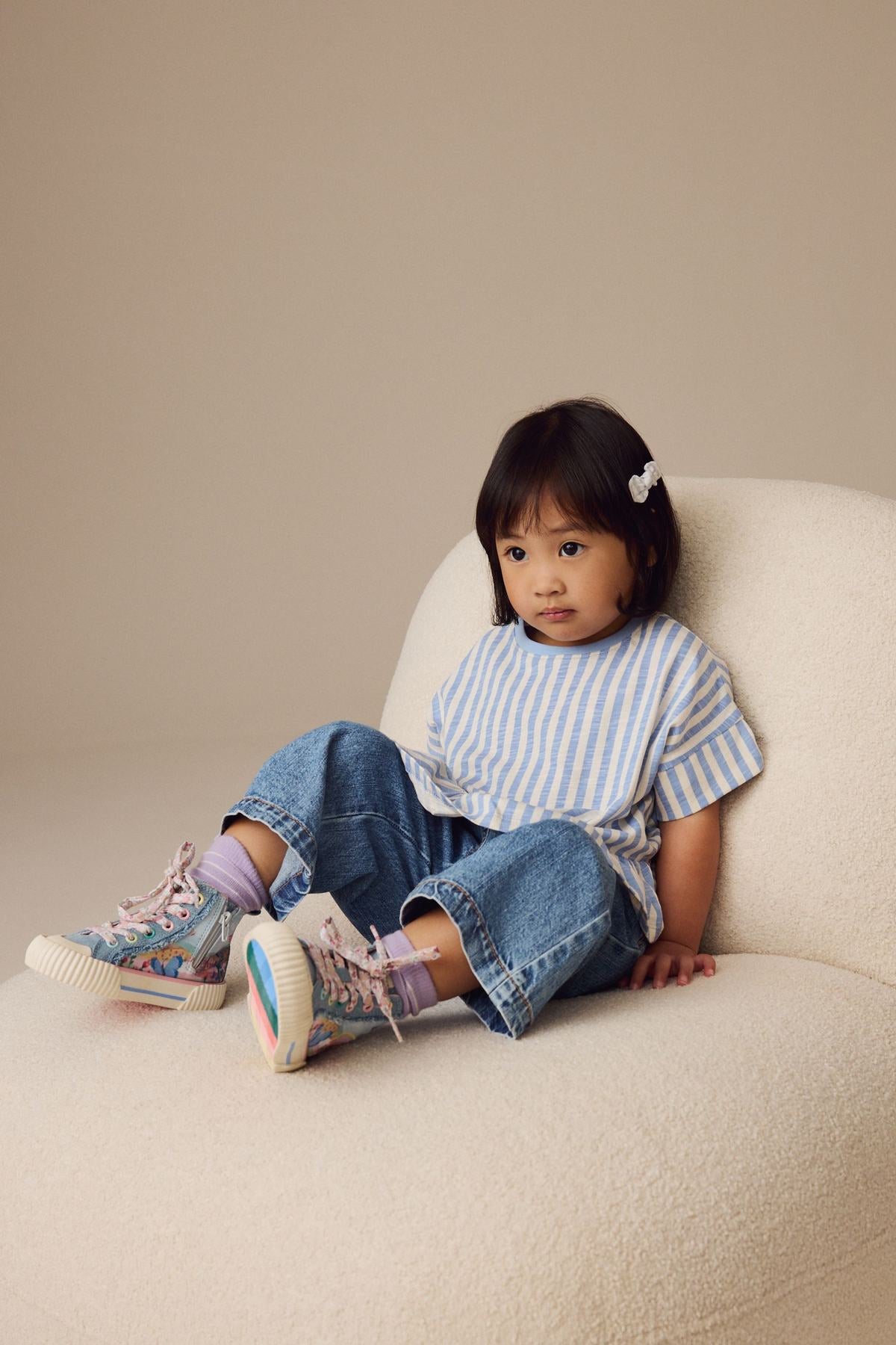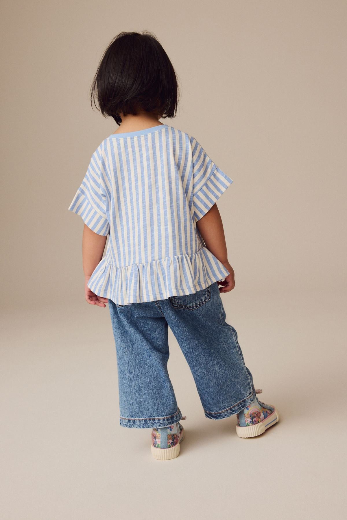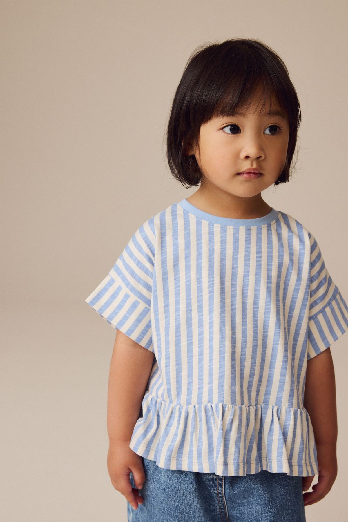 Blue Stripe 100% Cotton Short Sleeve Peplum T-Shirt (100% Cotton)