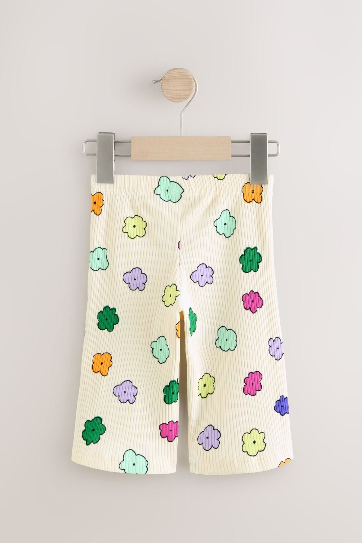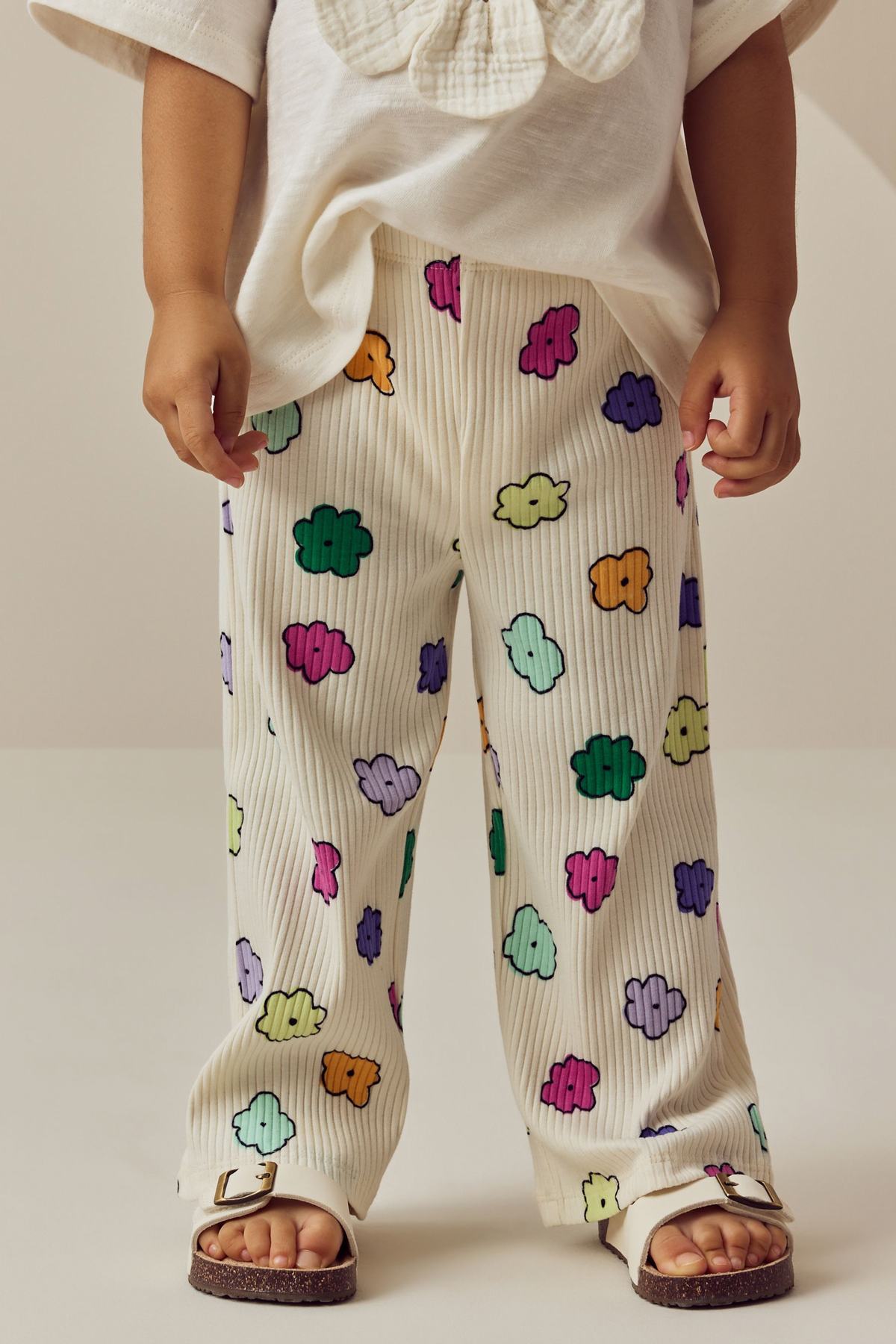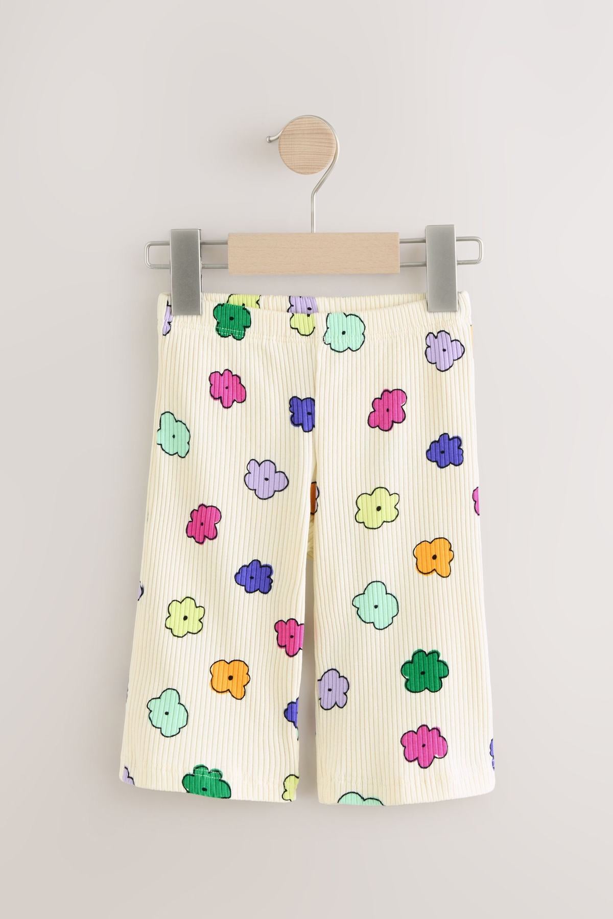 Rainbow Flower Ribbed Wide Leg Trousers Leggings (95% Cotton5% Elastane)