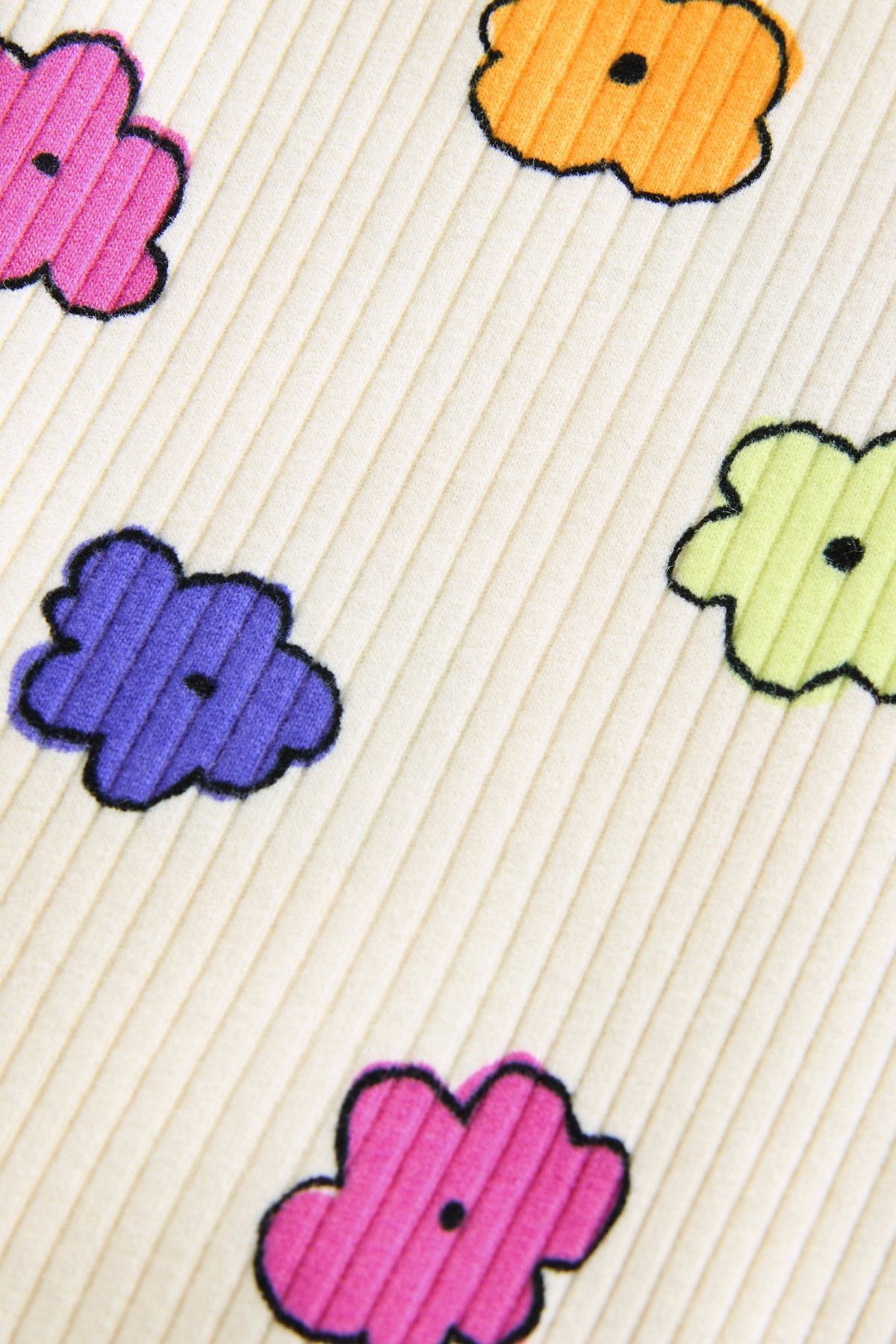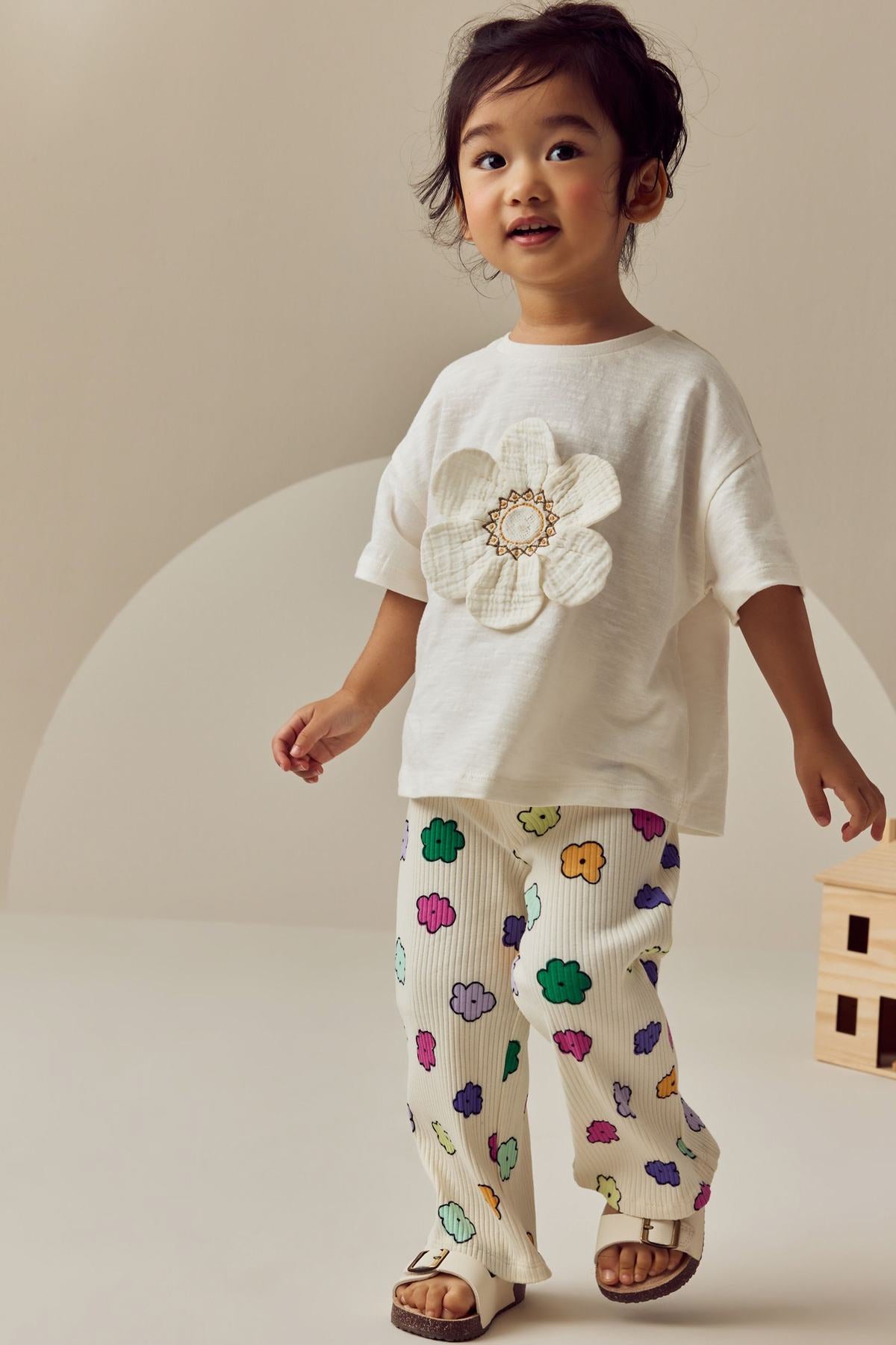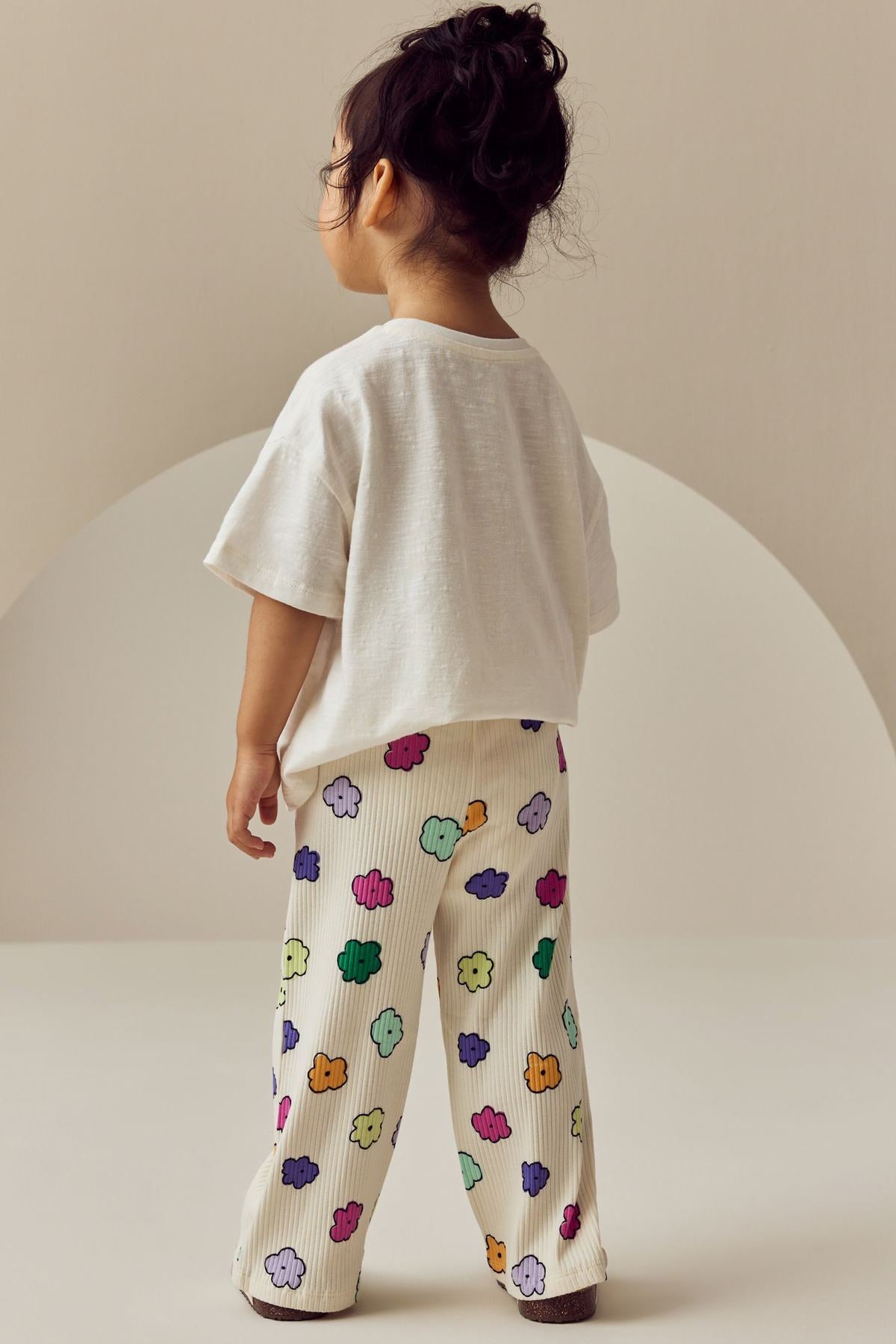 Rainbow Flower Ribbed Wide Leg Trousers Leggings (95% Cotton5% Elastane)