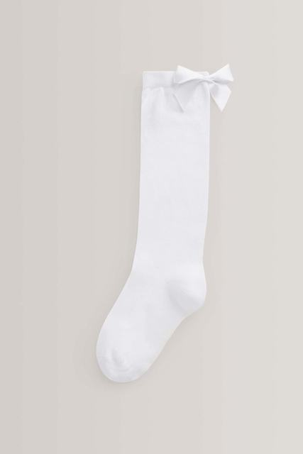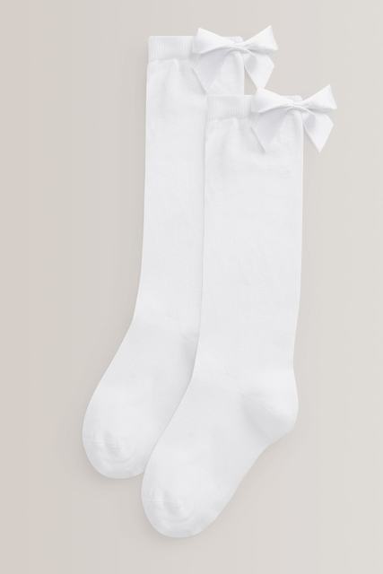 White 2 Pack Cotton Rich Bow Knee High Socks