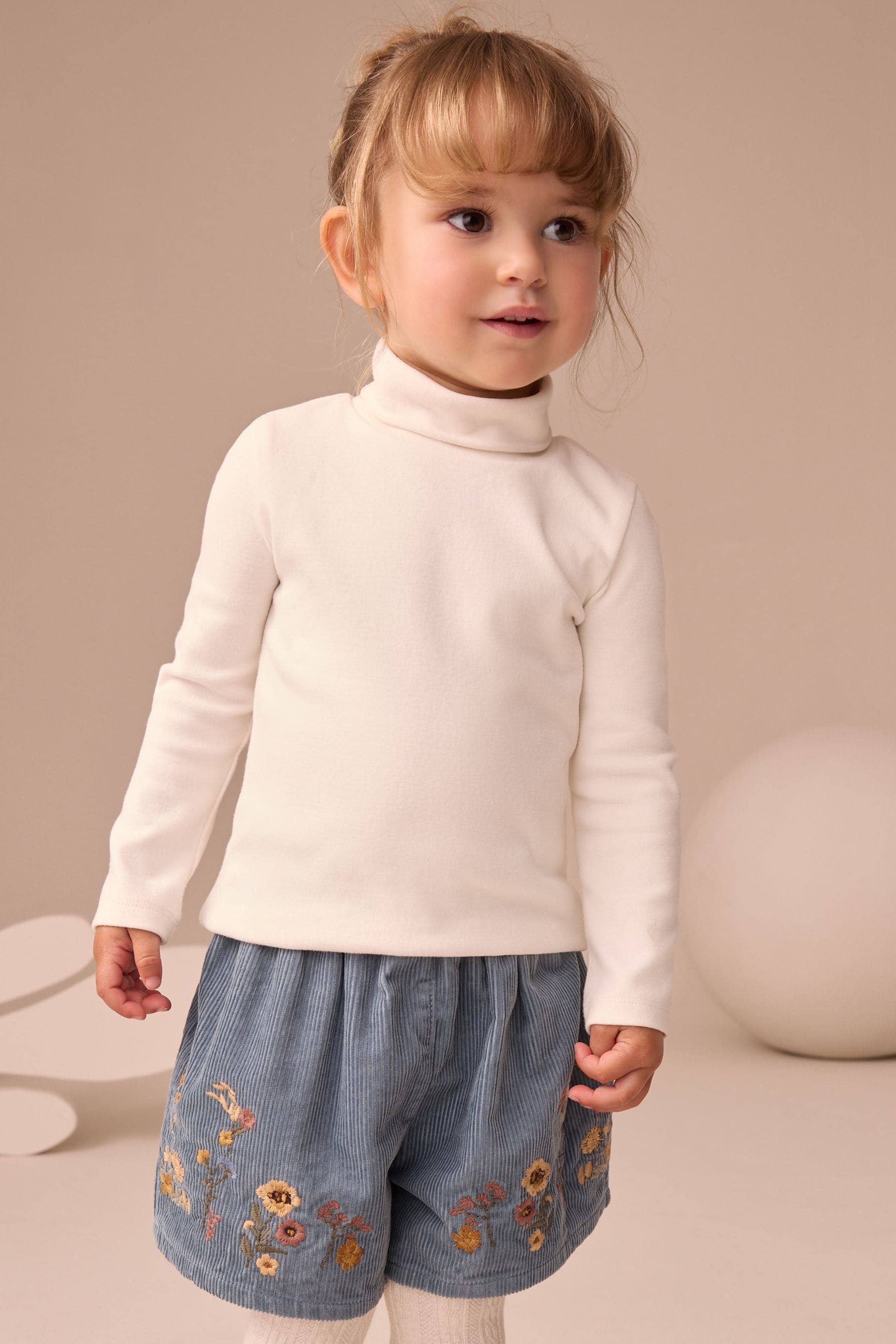 Ecru White Long Sleeve Roll Neck Top