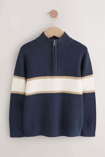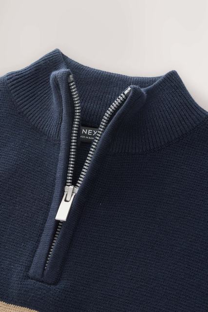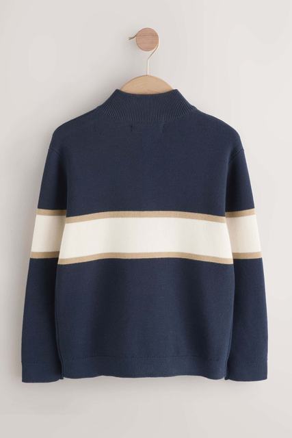 Navy Blue Colourblock Zip Neck Knitted Jumper (3-16yrs)