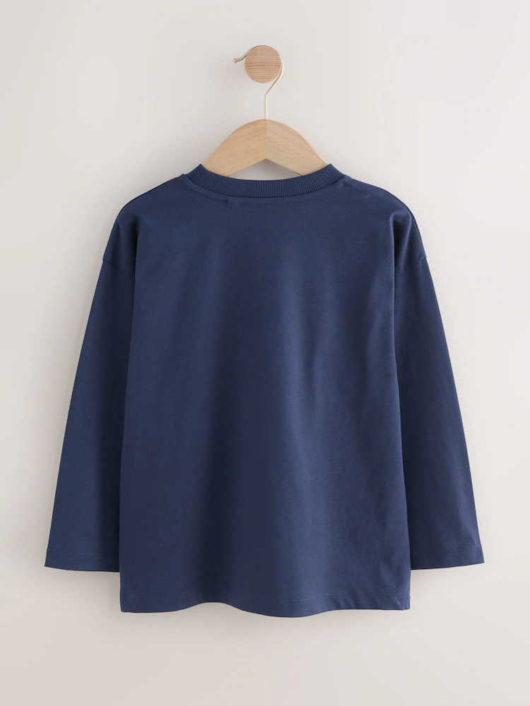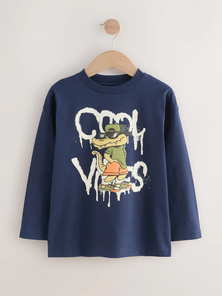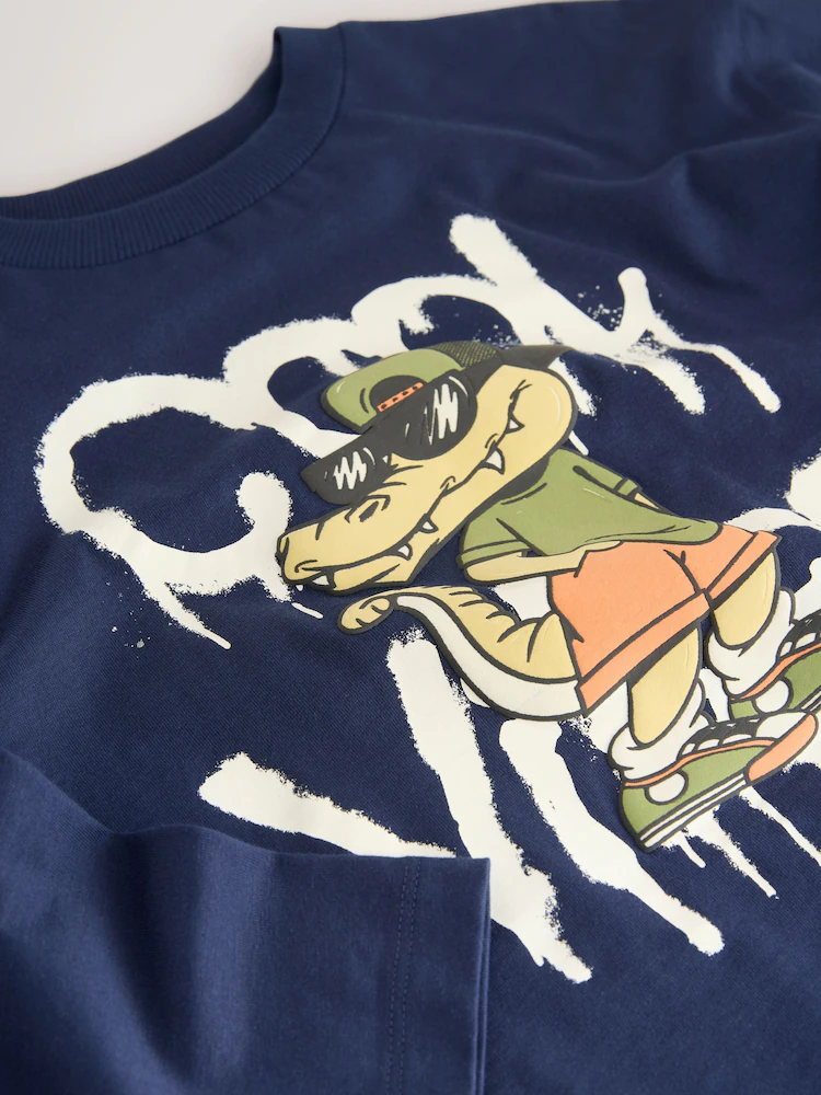 Navy Blue Crocodile Relaxed Fit Graphic Long Sleeve Cotton T-Shirt (3-16yrs)