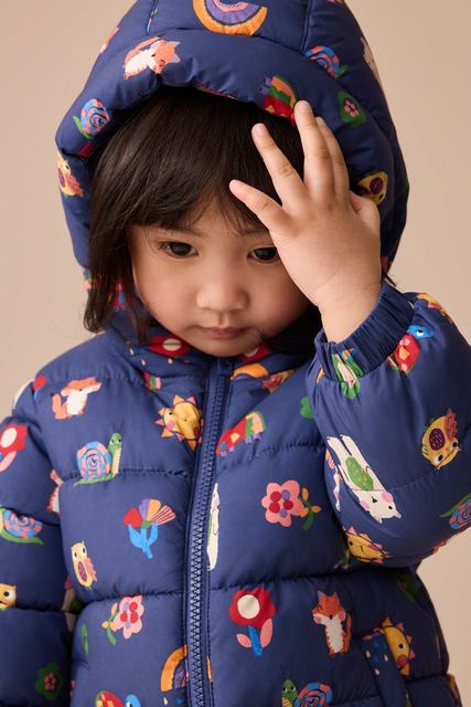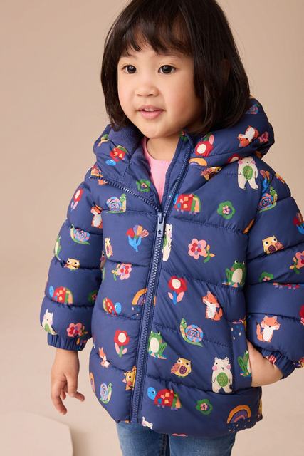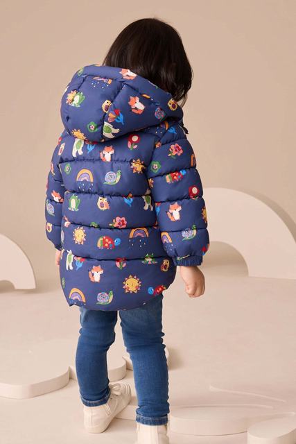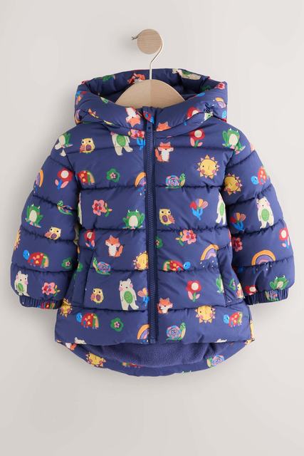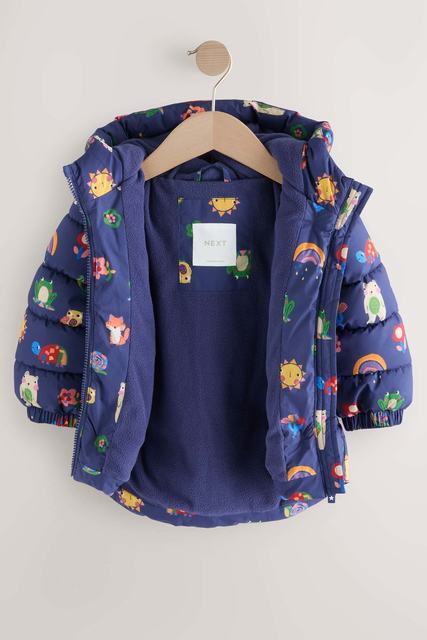 Navy Character Shower Resistant Fleece Lined Hooded Padded Coat (3mths-7yrs)
