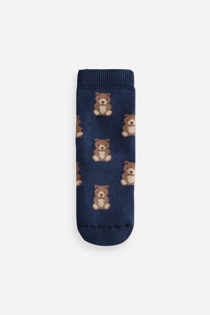 Navy/Ecru Bear Cosy Terry Cotton Rich Socks 5 Pack