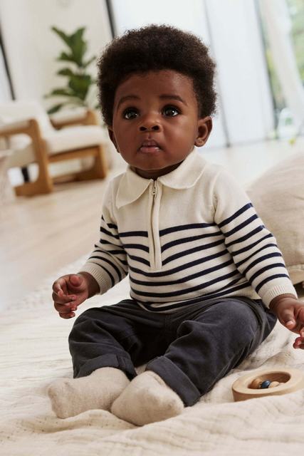 Navy Stripe Baby Knitted Top and Trousers Set (0mths-2yrs)