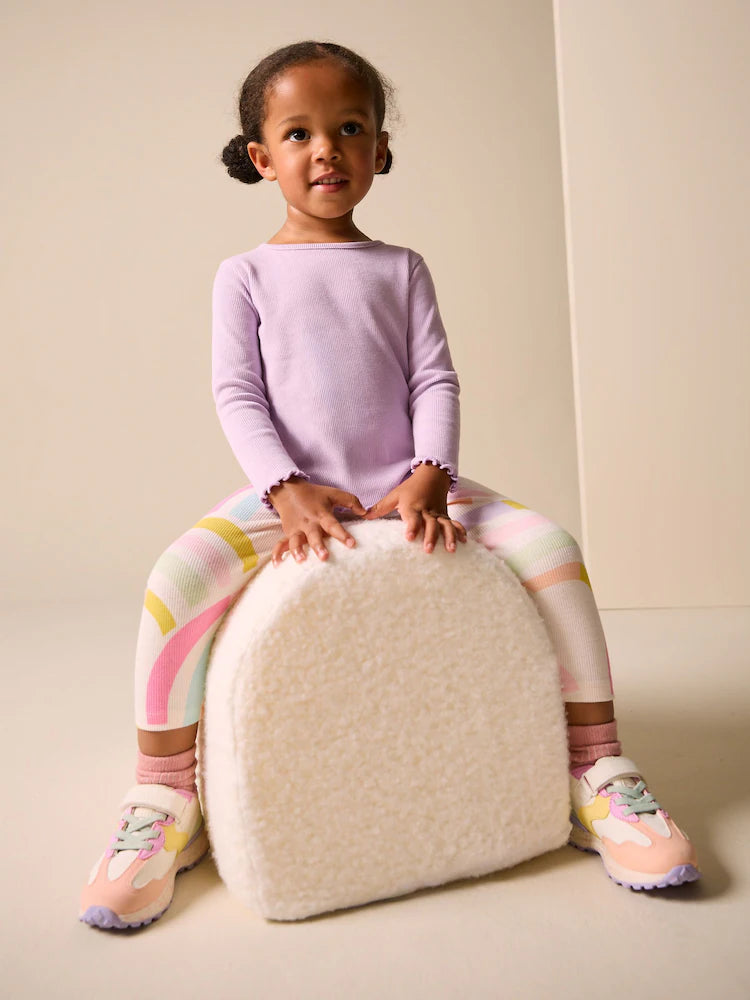 Ecru White Ribbed Leggings (3mths-7yrs) | 95% Cotton5% Elastane