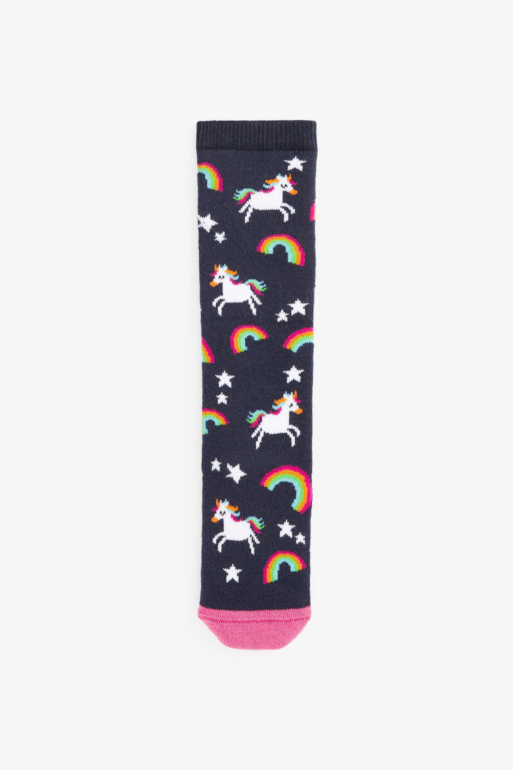 Navy Blue 2 Pack Thermal Cotton Rich Unicorn Welly Socks | 78% Cotton19% Nylon2% Lycra