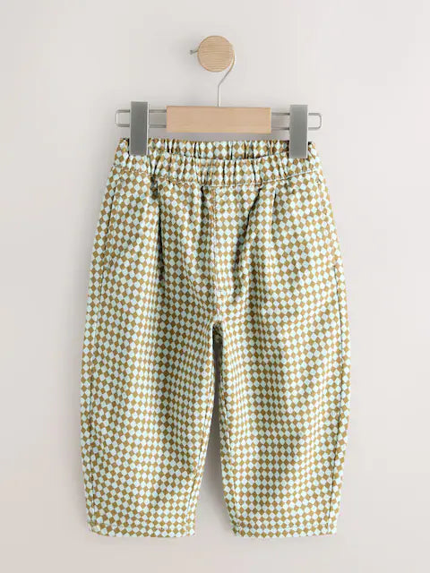 Green/Blue Mini Harlequin Barrel Pull On Trousers (3mths-7yrs) (3mths-7yrs) | 100% Cotton