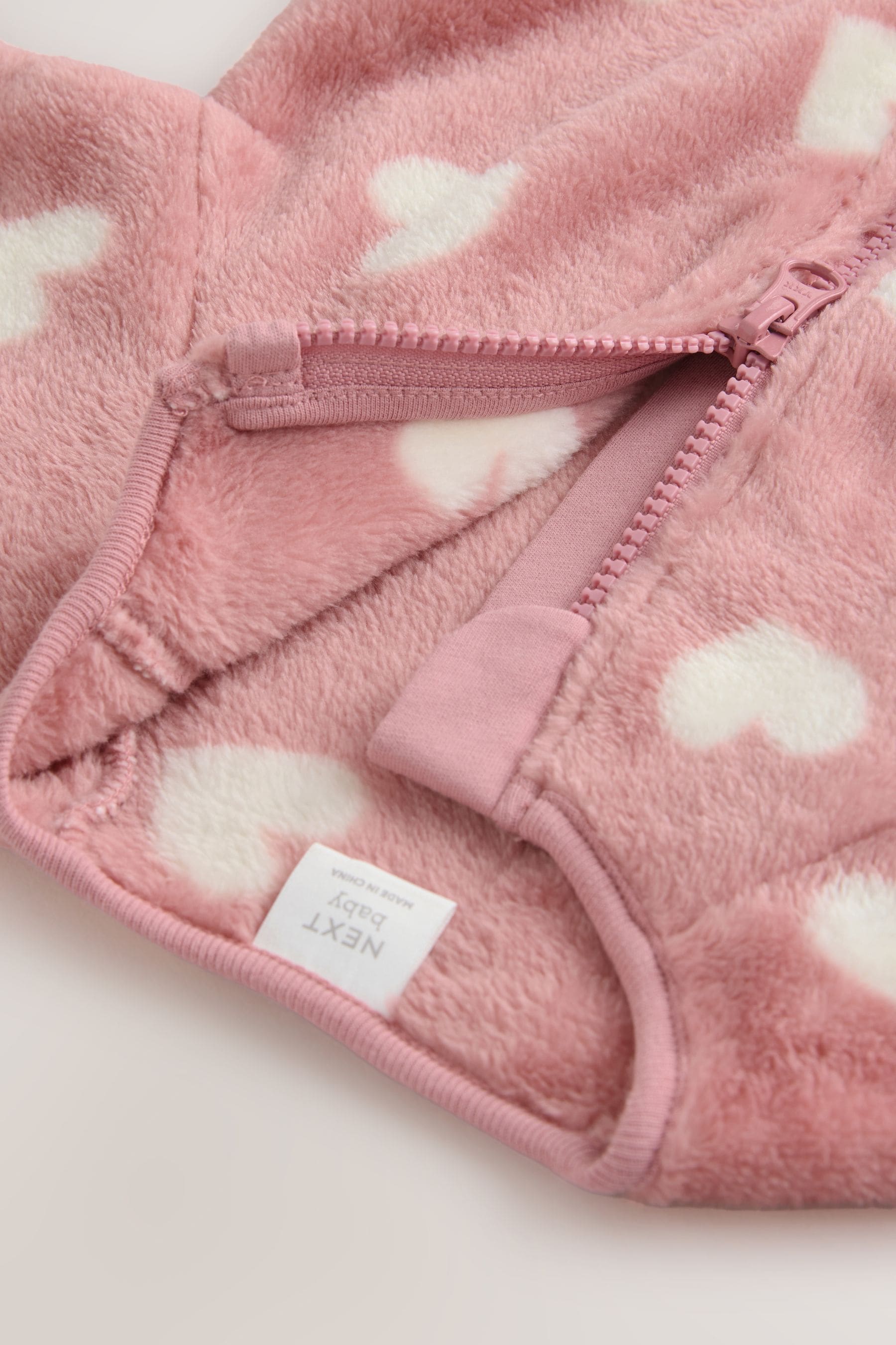 Pink Heart Print Baby Fleece Sleepsuit | 100% Recycled polyester