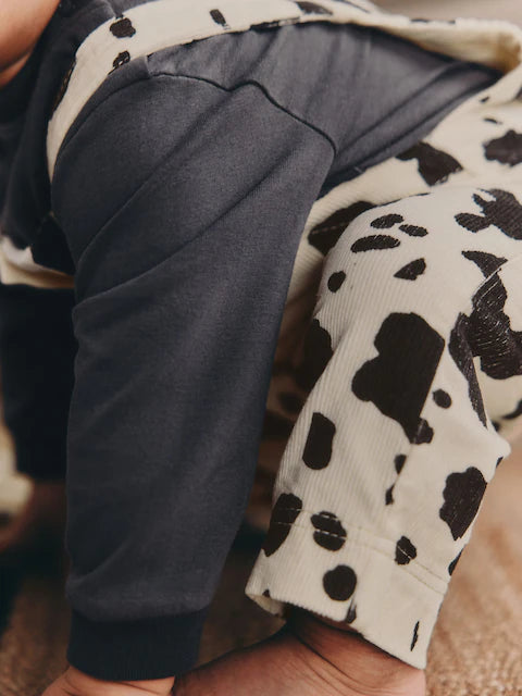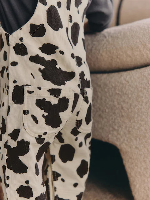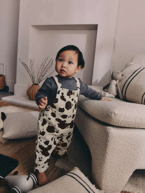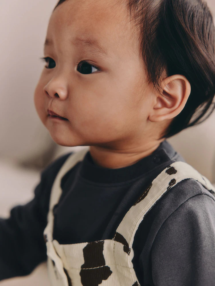 Charcoal/ Cream Cow Baby Dungarees and Bodysuit Set 2 Piece (0mths-3yrs) | 100% Cotton
