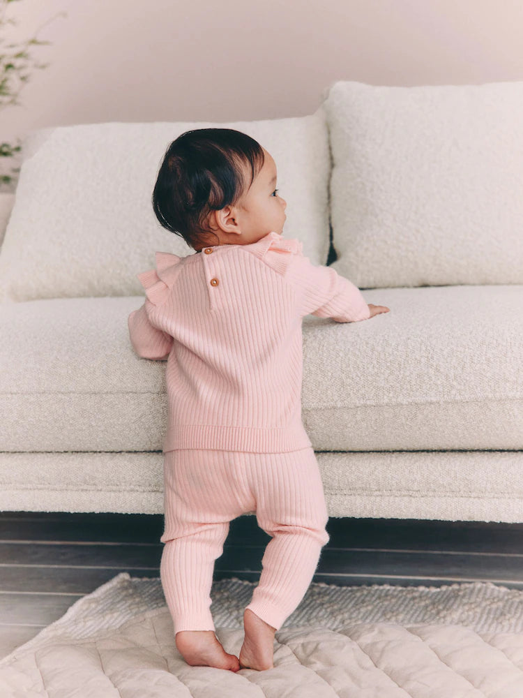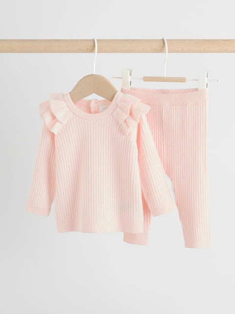 Light Pink Baby Knitted Jumper and Leggings Set 2 Piece (0mths-3yrs) | 55% Viscose28% Polyester17%