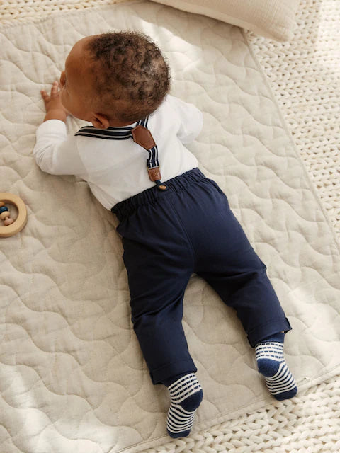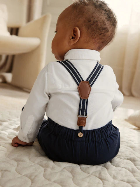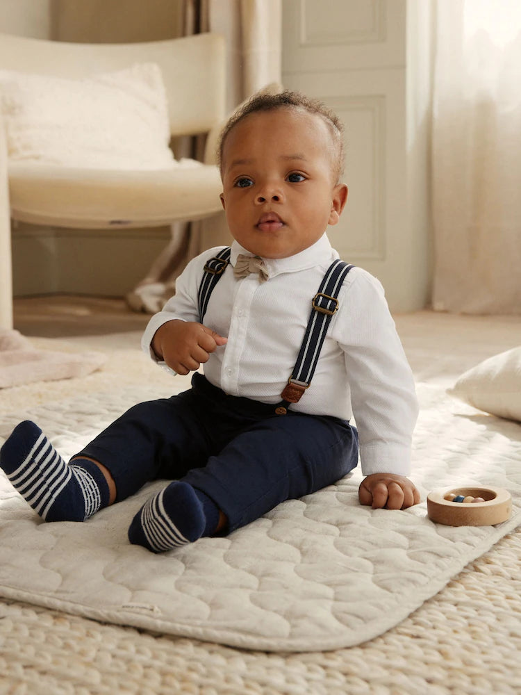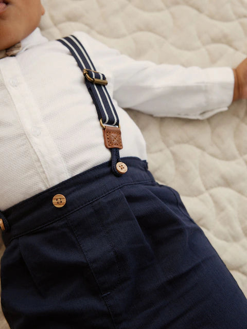 Navy Baby Shirt Trousers and Braces 4 Piece Set (0mths-2yrs) | 100% Cotton