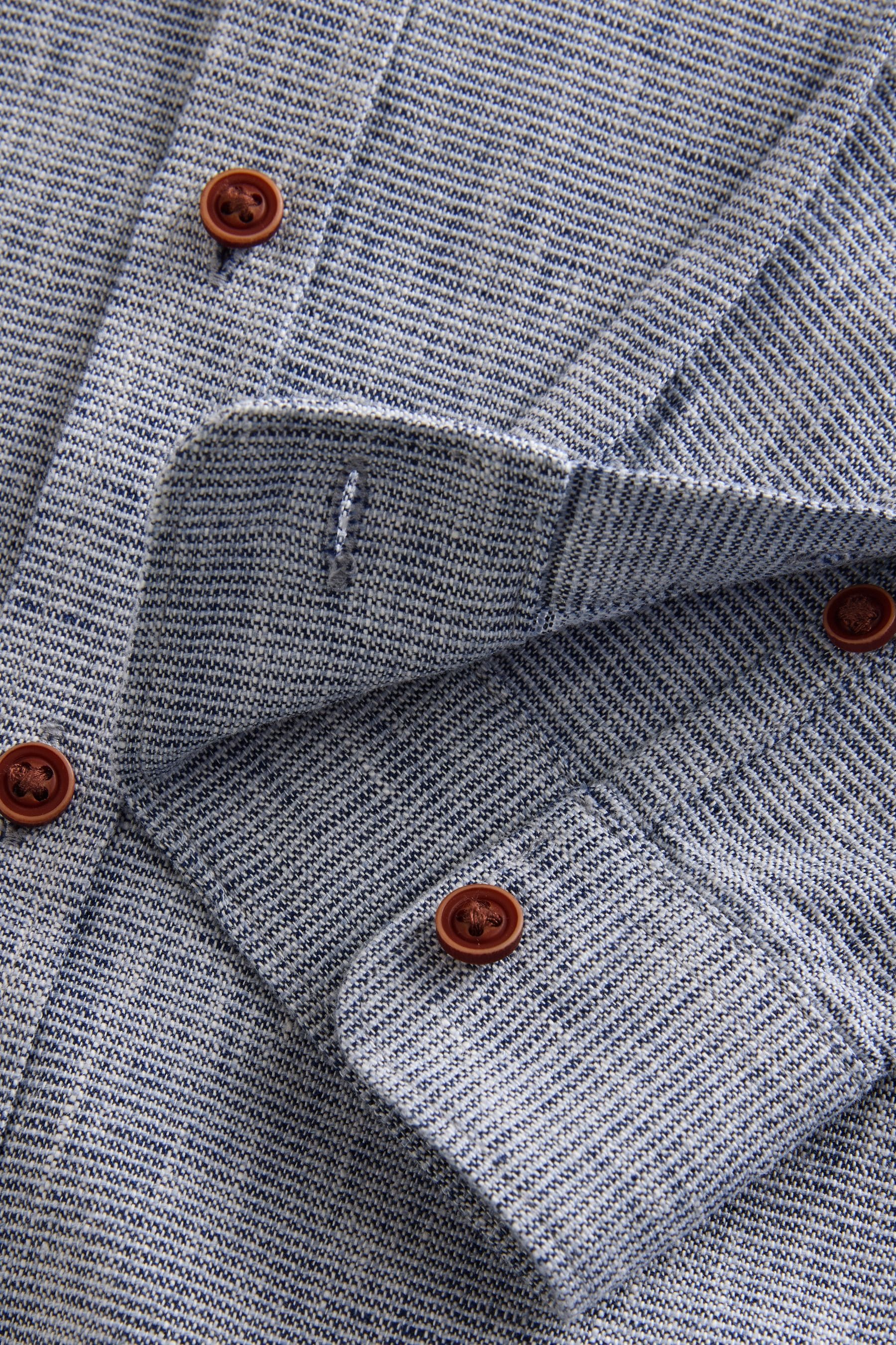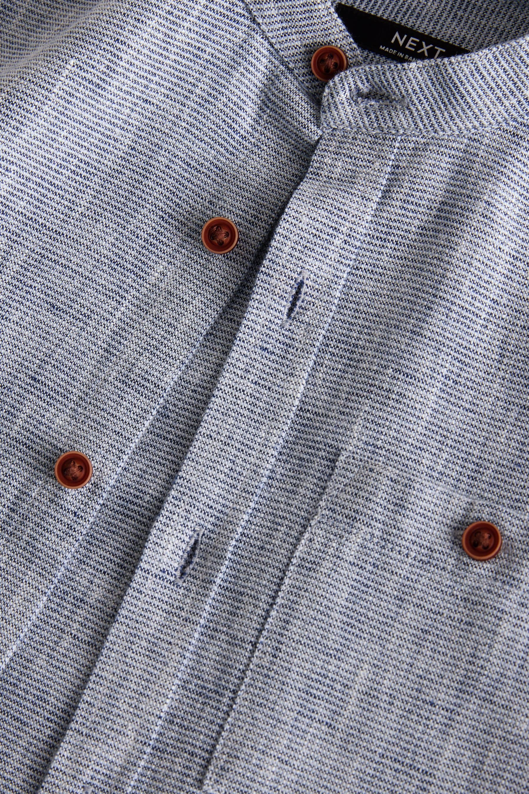 Blue Long Sleeve Grandad Collar Cotton/Linen Mix Texture Shirt (3-16yrs) | 60% Cotton40% Linen