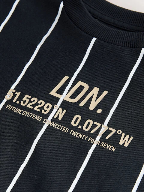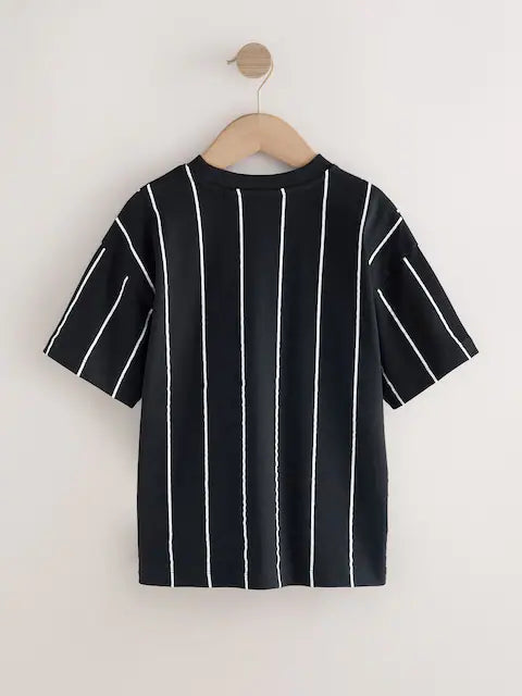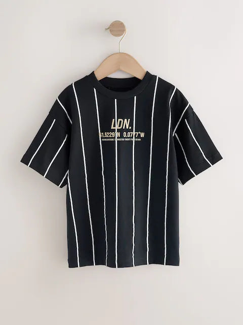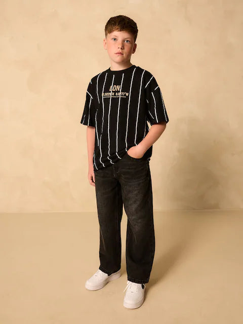 Black/White Stripe Relaxed Fit Short Sleeve Graphic T-Shirt (3-16yrs) | 100% Cotton