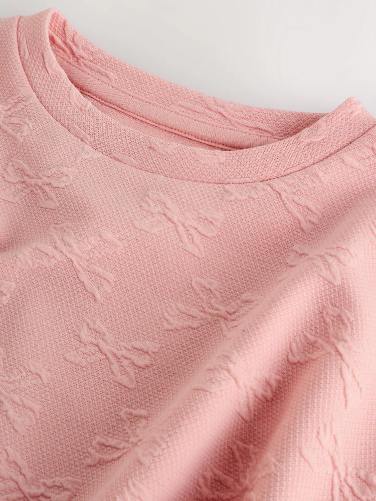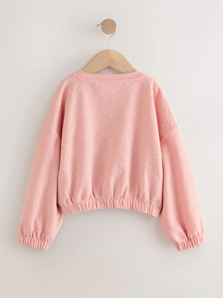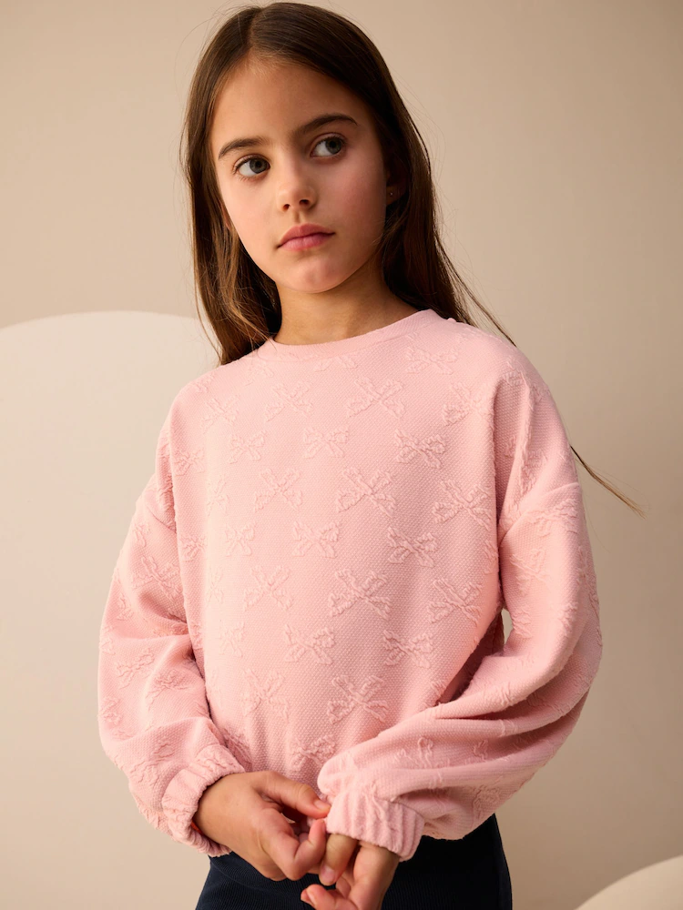 Pink Textured Bow Long Sleeve Top (3-16yrs)