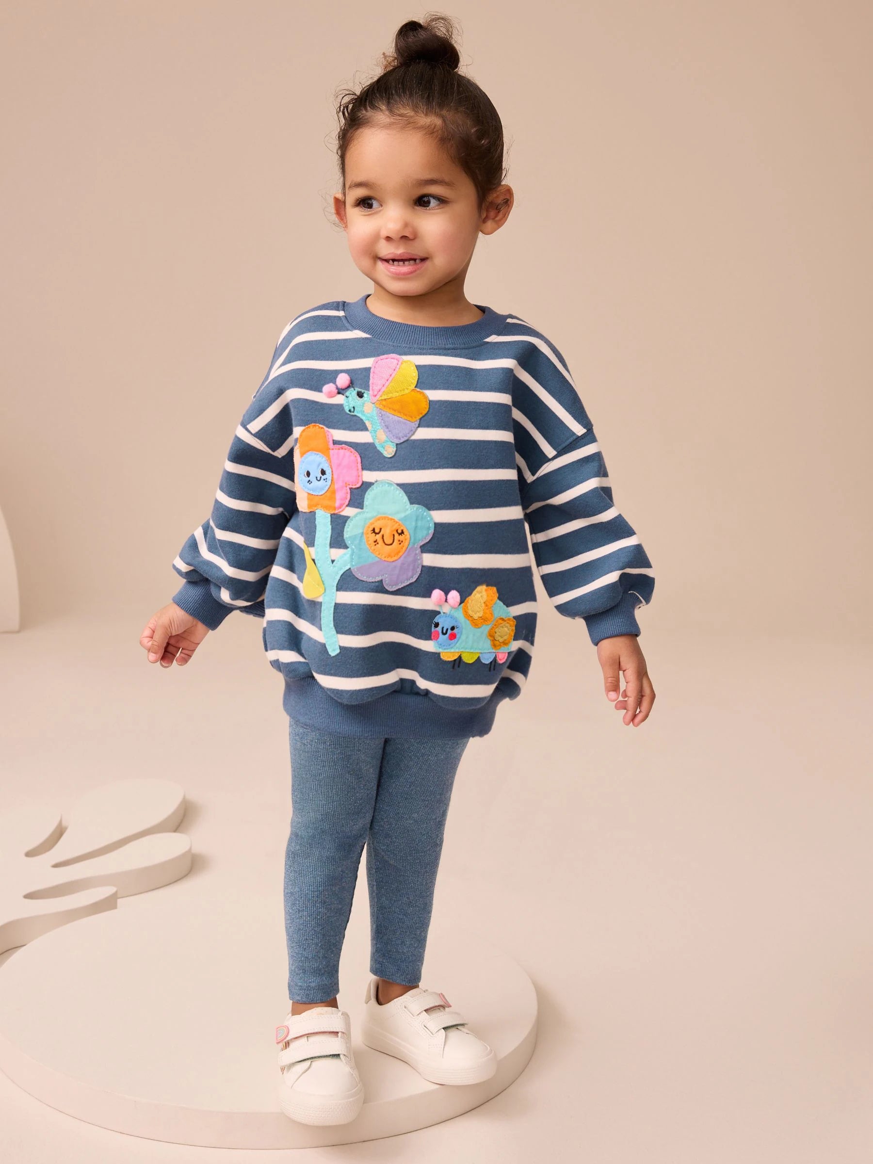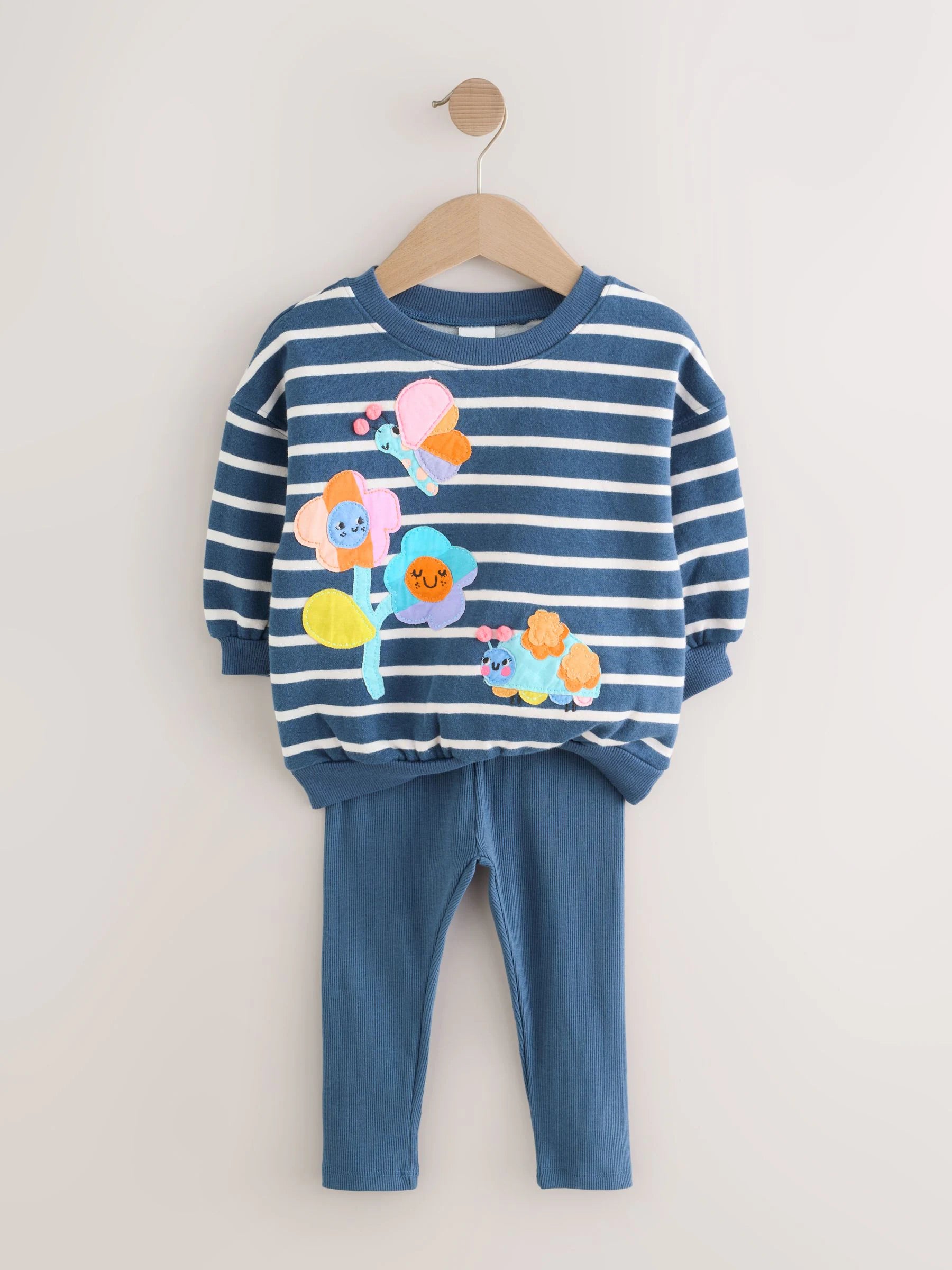 Navy Stripe Characters Sweatshirt and Leggings Set