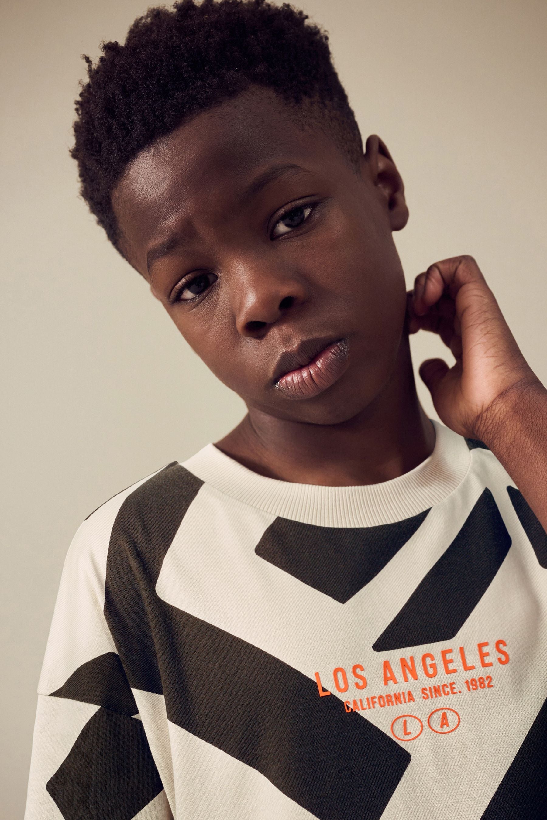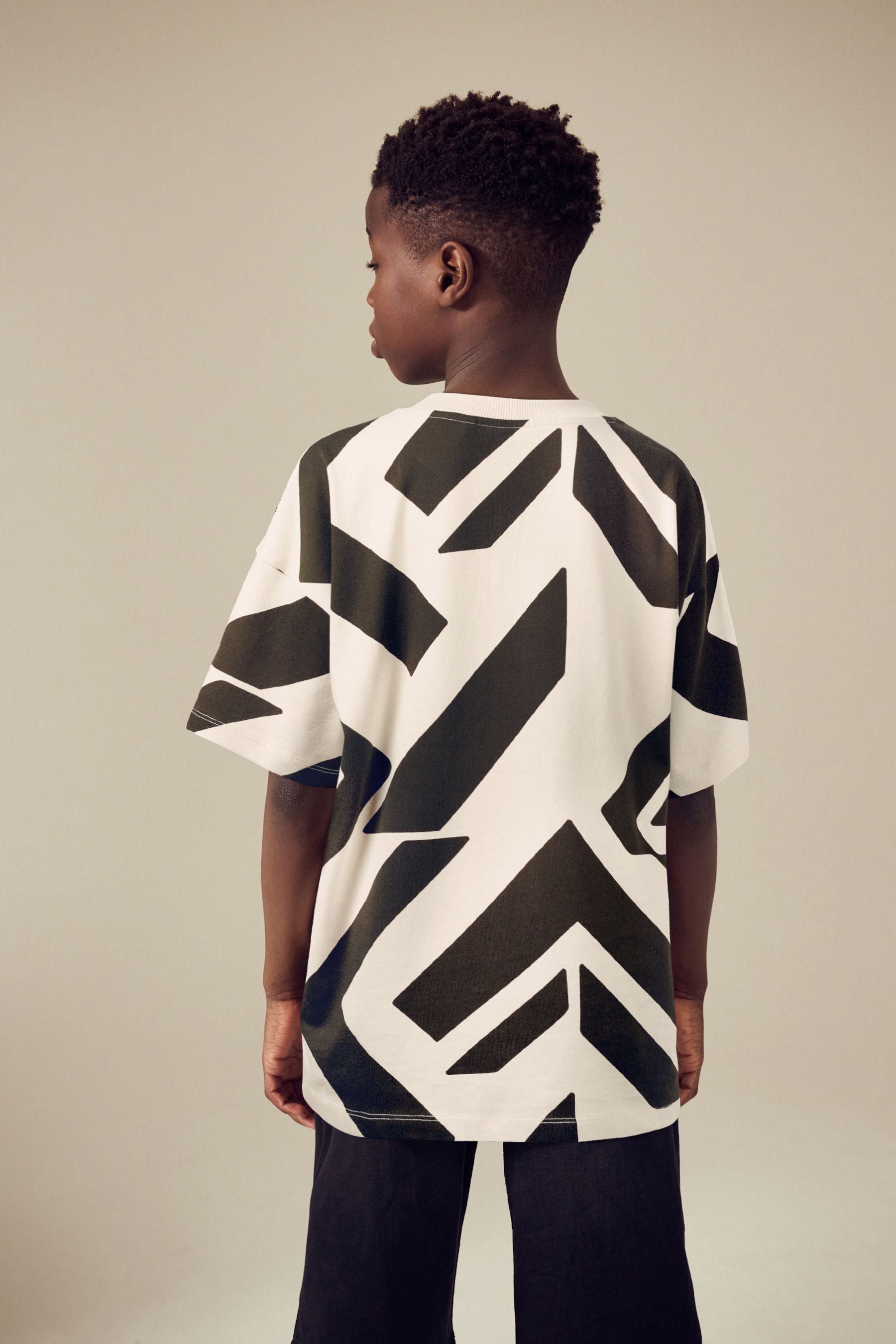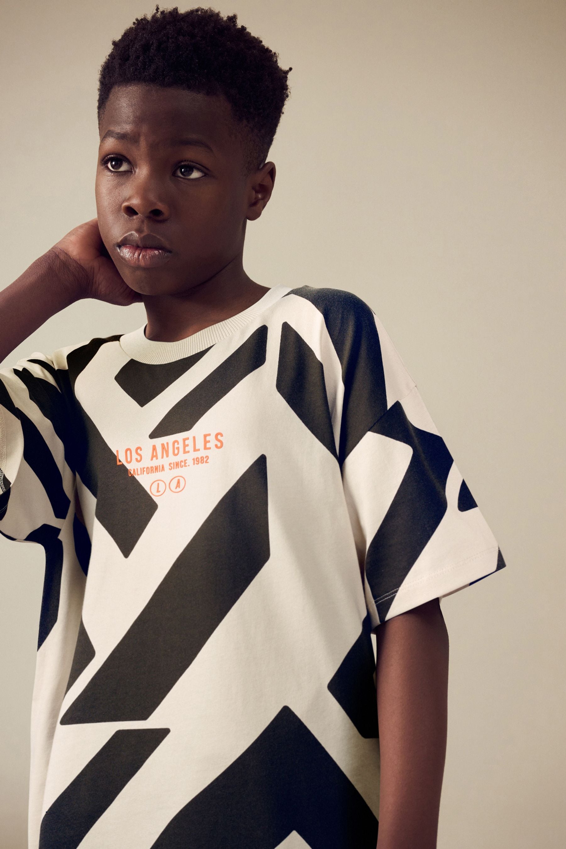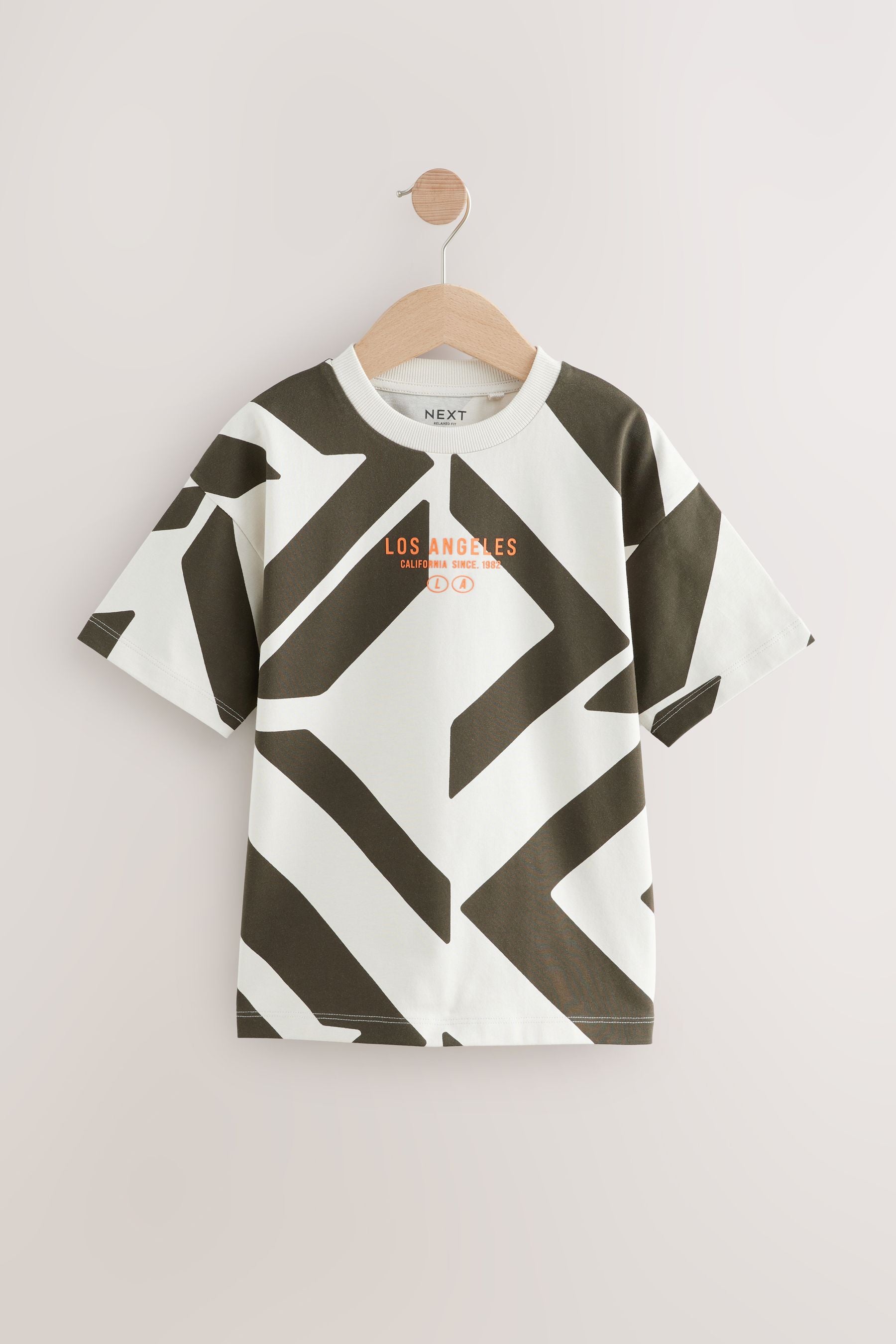 Ecru/Charcoal Relaxed Fit Short Sleeve All-Over Print T-Shirt