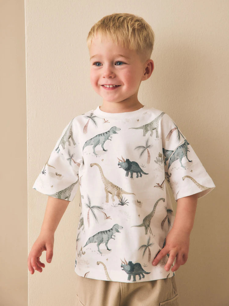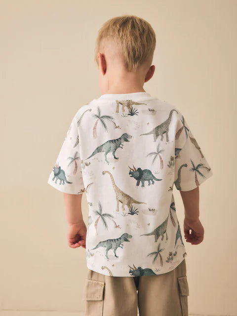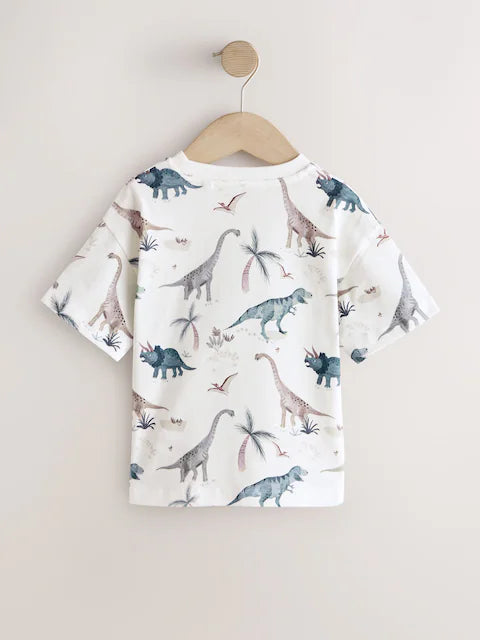 NEXT - White Watercolour Dinosaurs Short Sleeve All-Over Print T-Shirt – Cotton Candy™ Pakistan